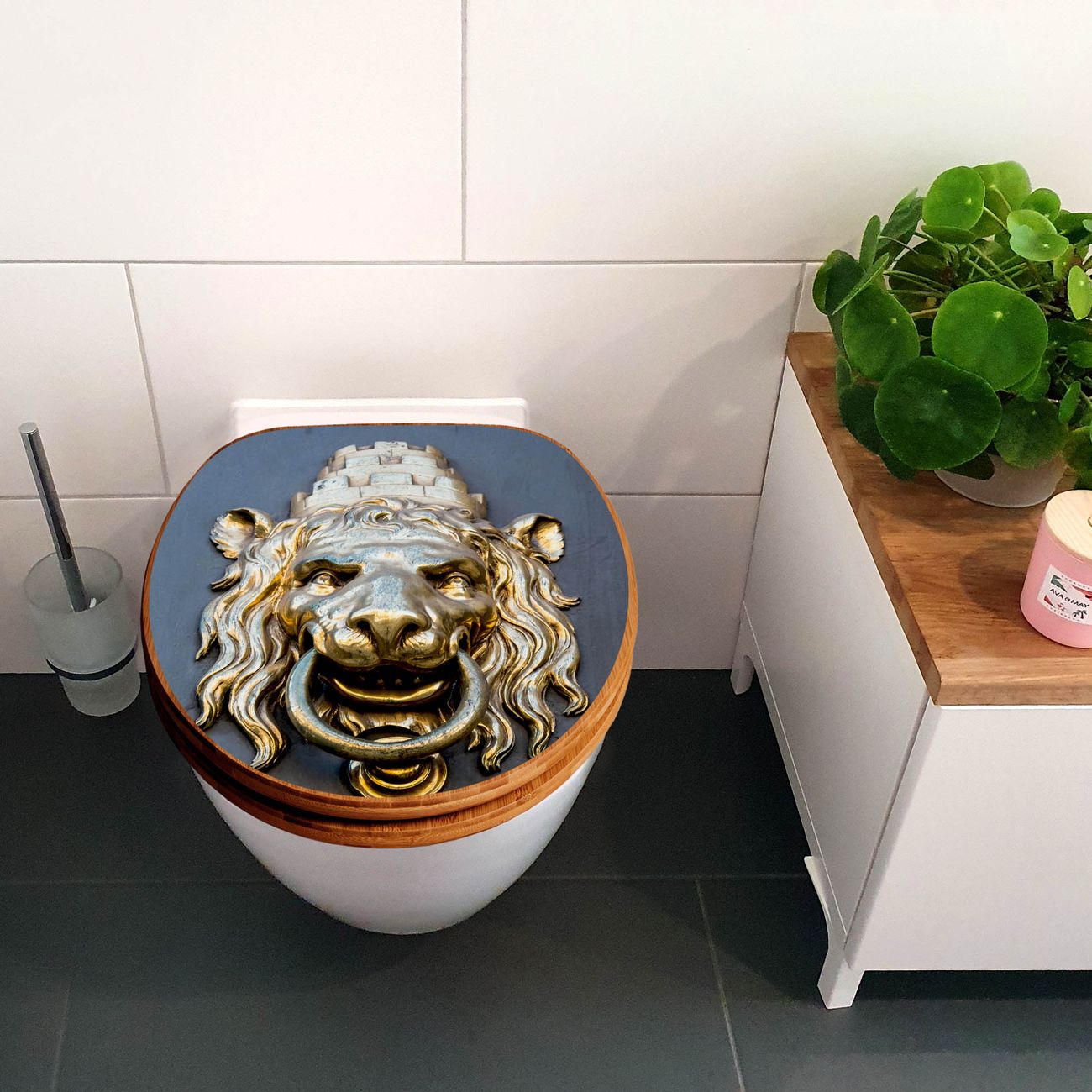Design WC-Sitz Bambus Absenkautomatik Motiv Türklopfer Löwe