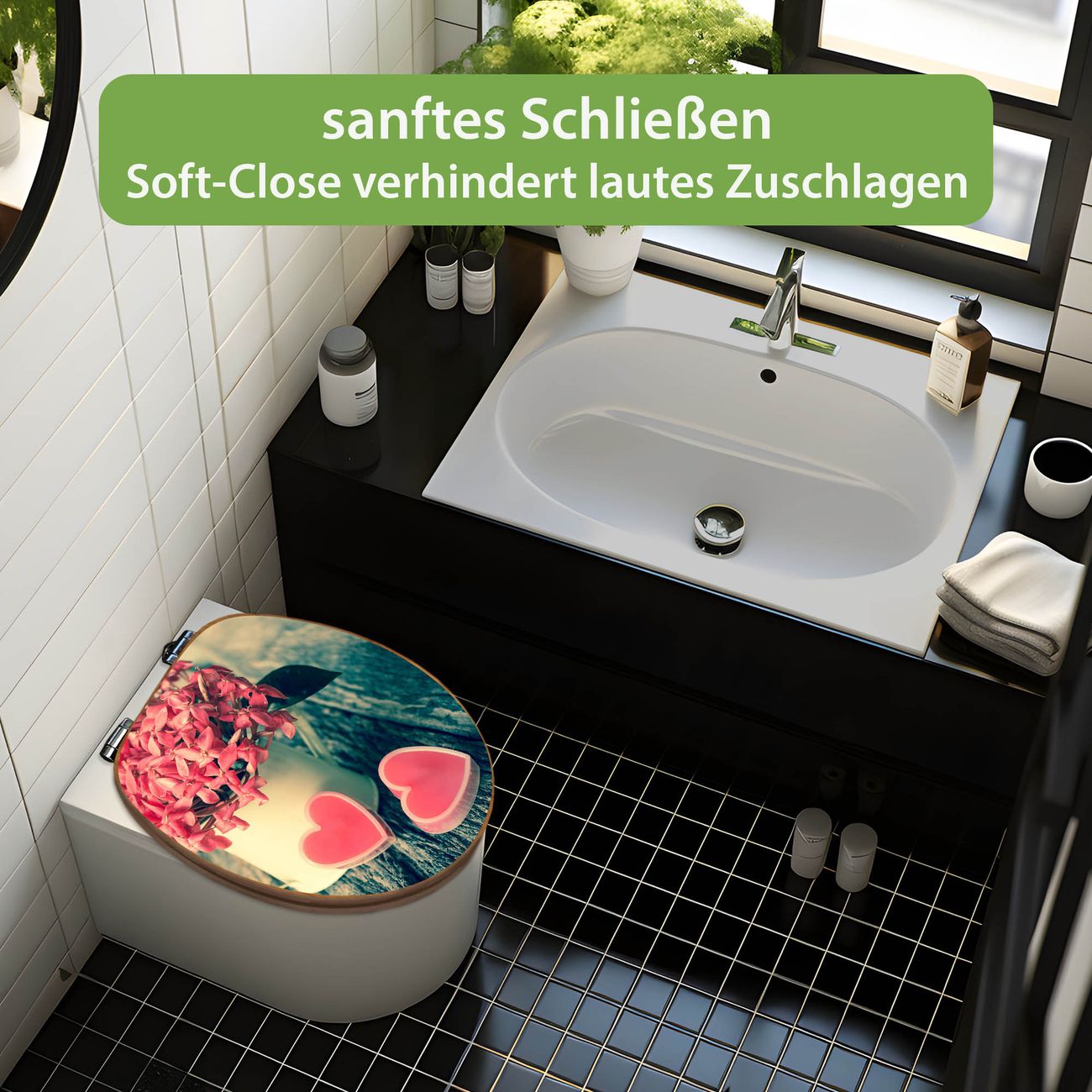 Design WC-Sitz Bambus Absenkautomatik Motiv Valentin