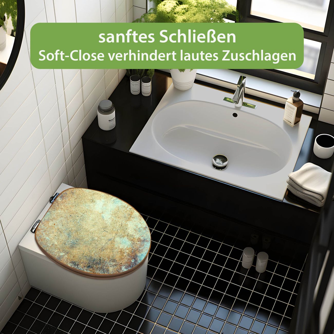 Mit dem banjado Toilettensitz in Bambus verbinden Sie Design und Funktionalität. Sie erhalten den WC-Sitz mit bewährter Holz Qualität und Universal Scharnieren. Das Motiv Motiv Verwitterte Patina besteht aus einer schutzlaminierten Motivfolie, die durch das Schutzlaminat zusätzlich vor Kratzern schützt. Durch diesen Motivdruck wird der WC-Sitz zu einem Blickfang in Ihrem Bad.