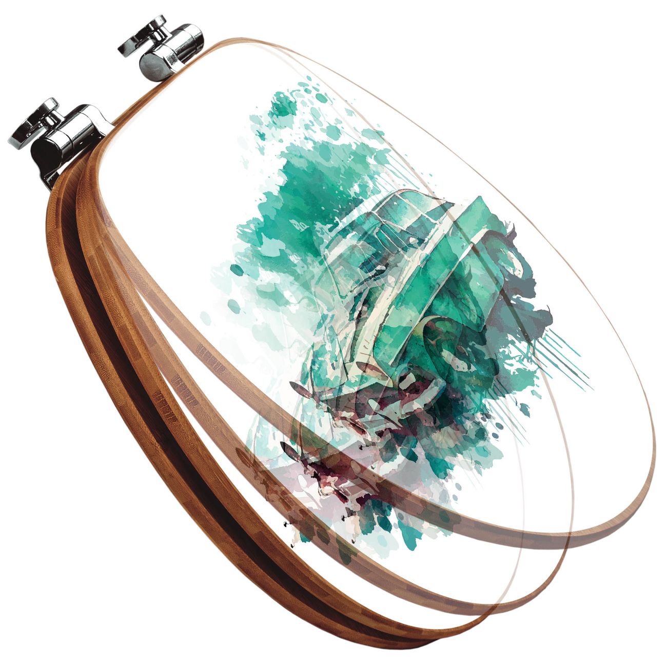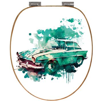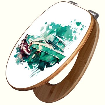 Design WC-Sitz Bambus Absenkautomatik Motiv Vintage Auto Aquarell