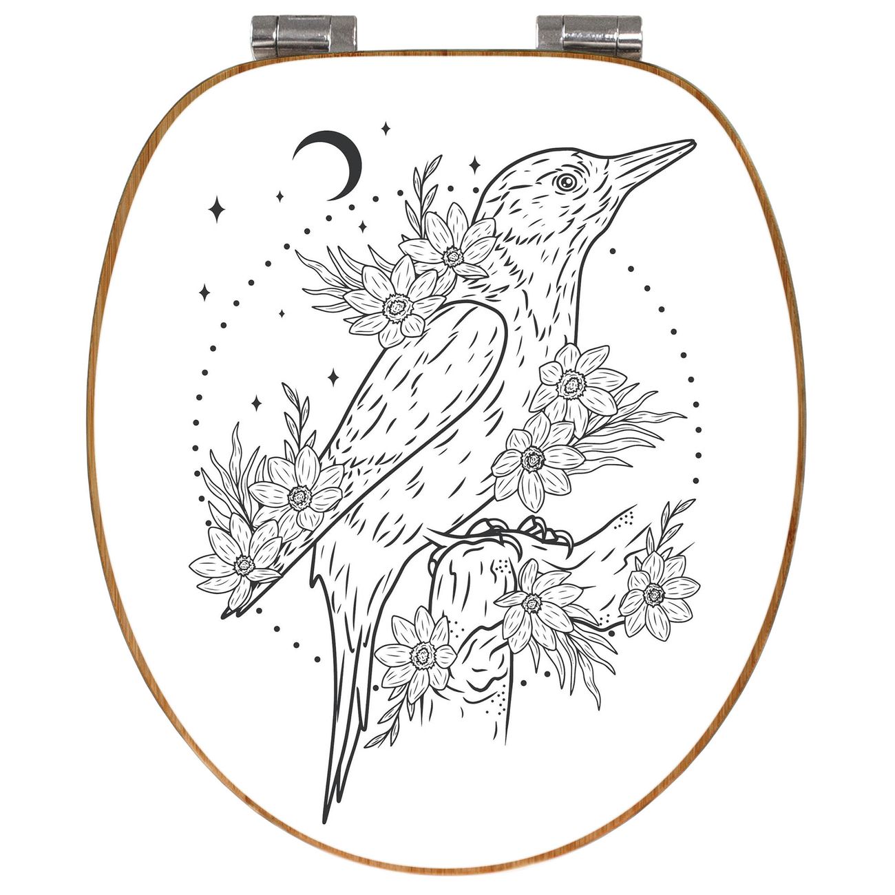 Design WC-Sitz Bambus Absenkautomatik Motiv Vogel und Blumen im Mondlicht