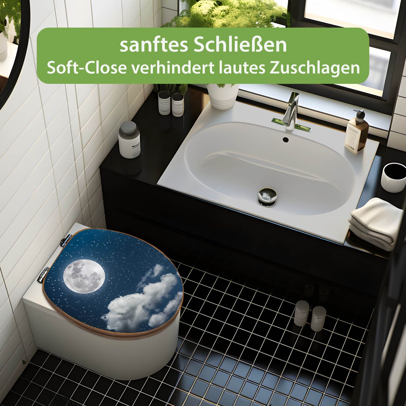 Design WC-Sitz Bambus Absenkautomatik Motiv Vollmond 3