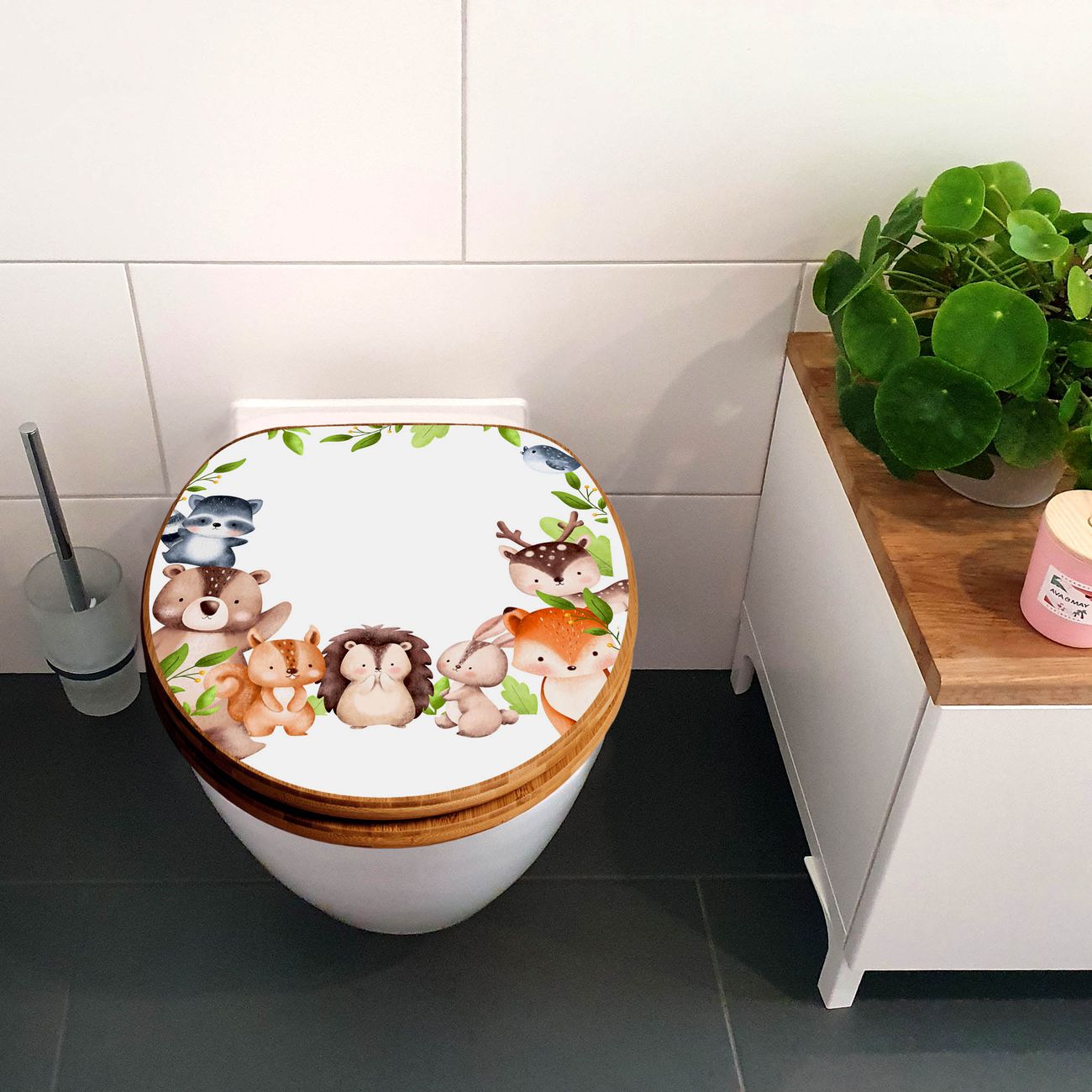 Design WC-Sitz Bambus Absenkautomatik Motiv Waldtier Freunde 2