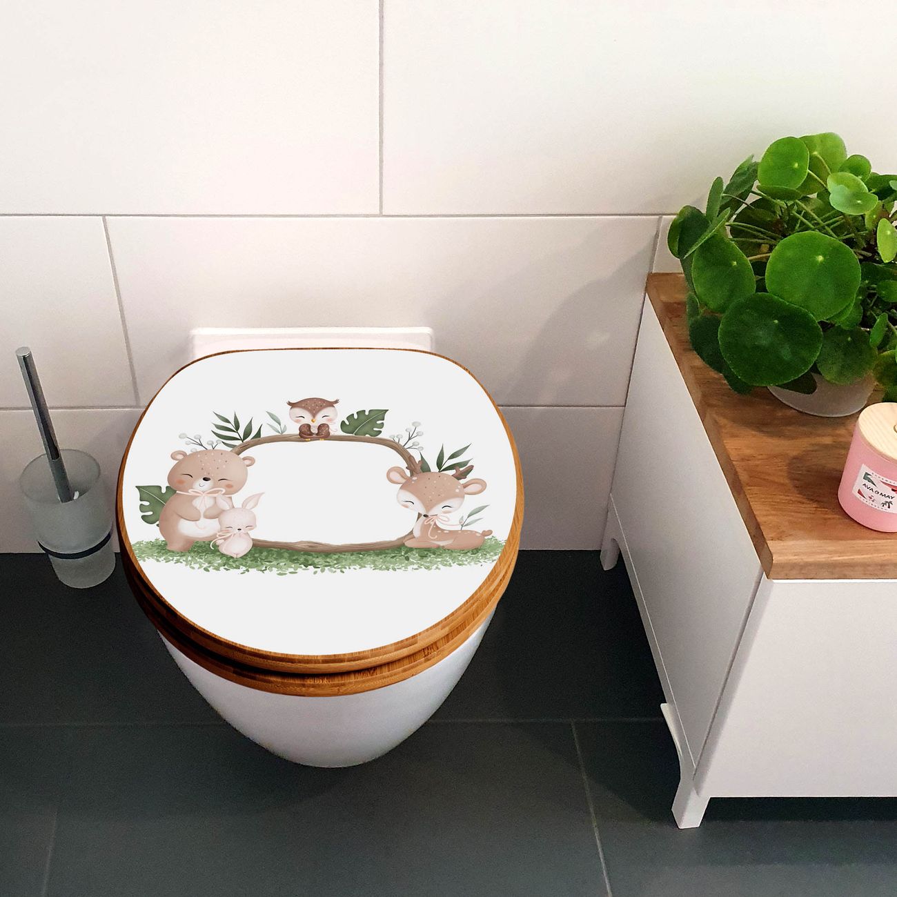 Design WC-Sitz Bambus Absenkautomatik Motiv Waldtier Freunde 3