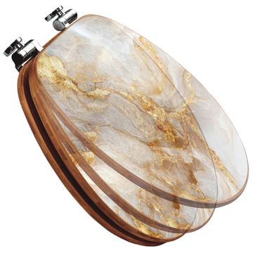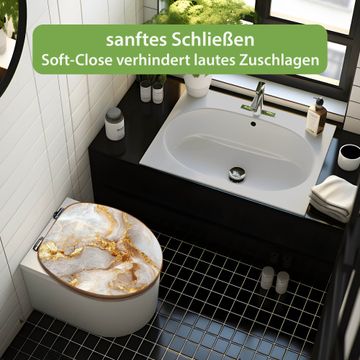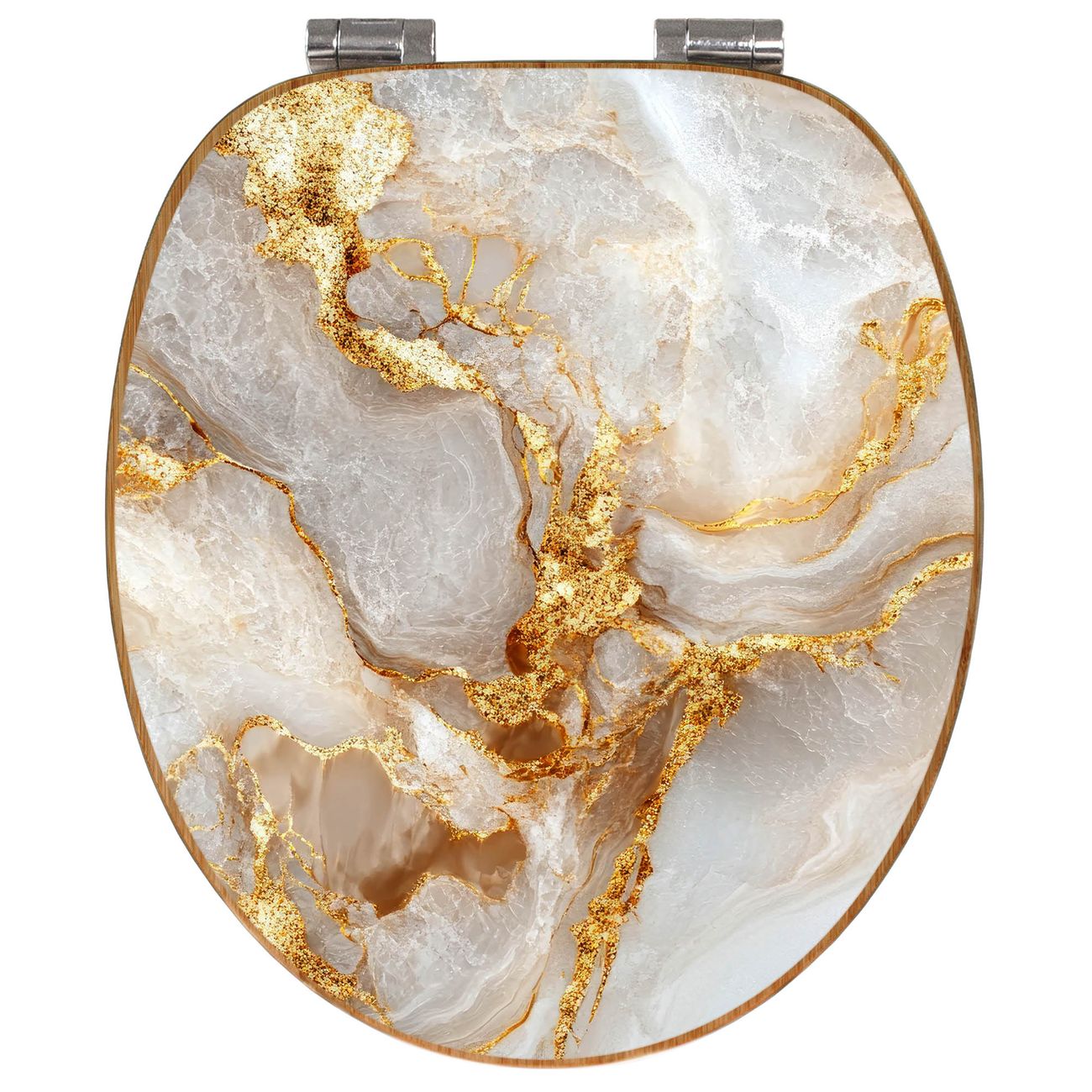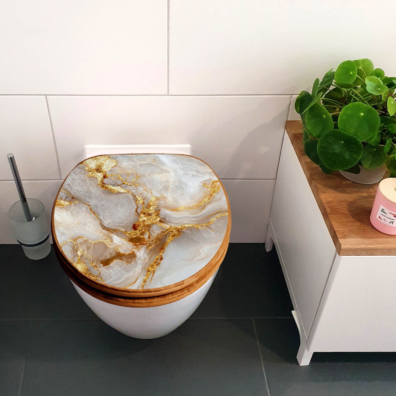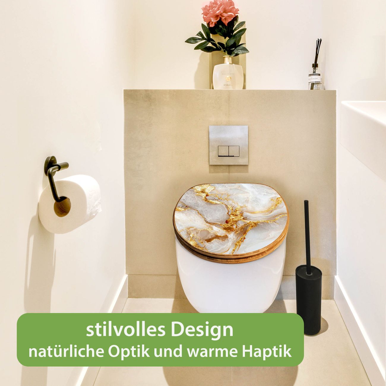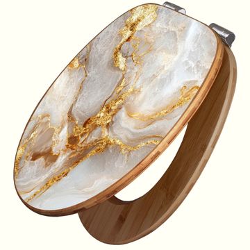 Design WC-Sitz Bambus Absenkautomatik Motiv Weißer Marmor mit Gold 1