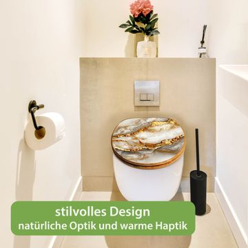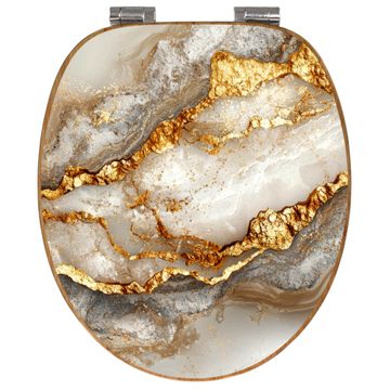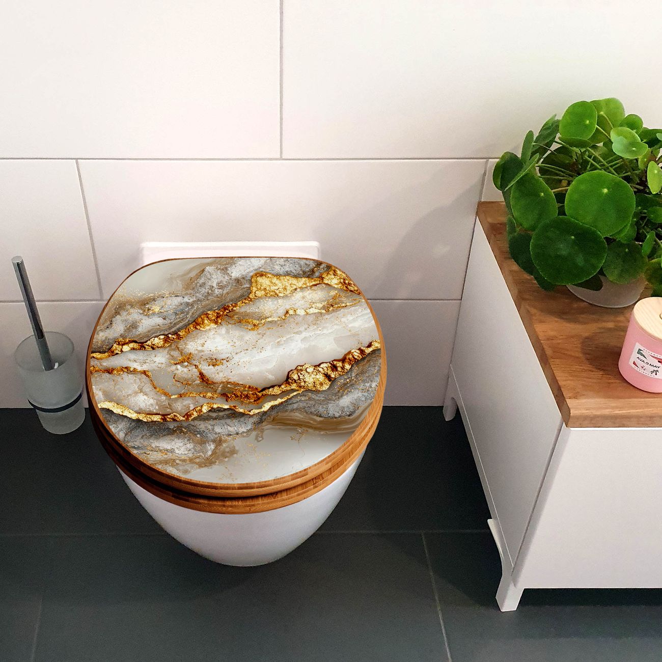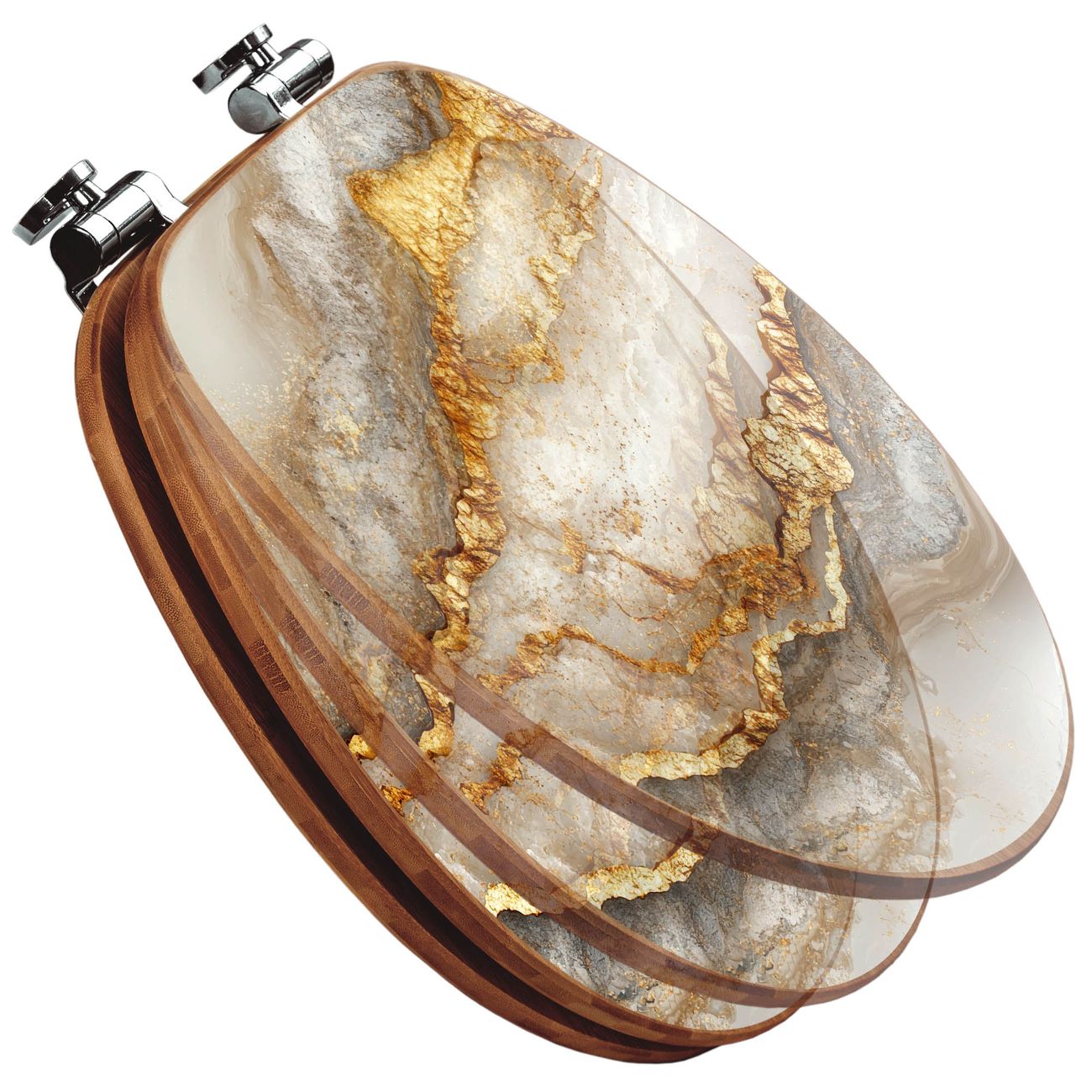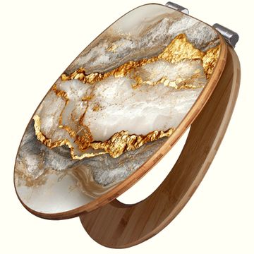 Design WC-Sitz Bambus Absenkautomatik Motiv Weißer Marmor mit Gold 2