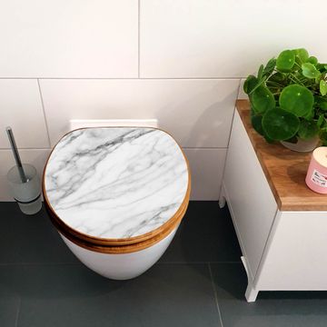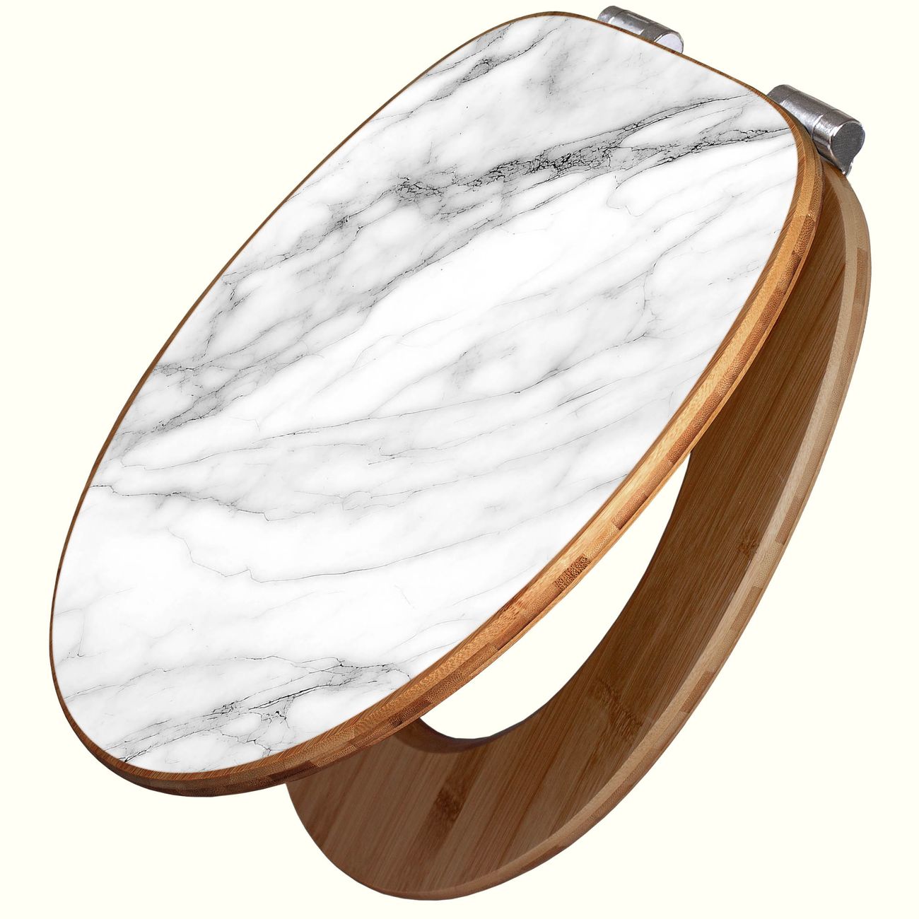 Design WC-Sitz Bambus Absenkautomatik Motiv Weißer Marmor