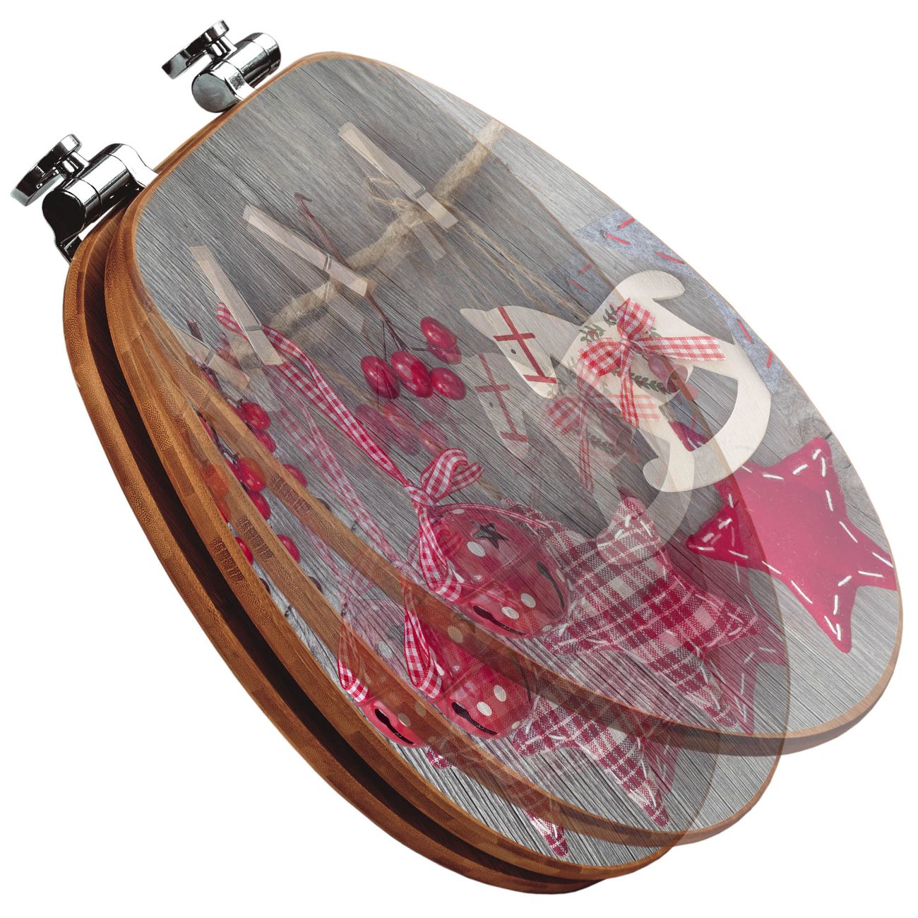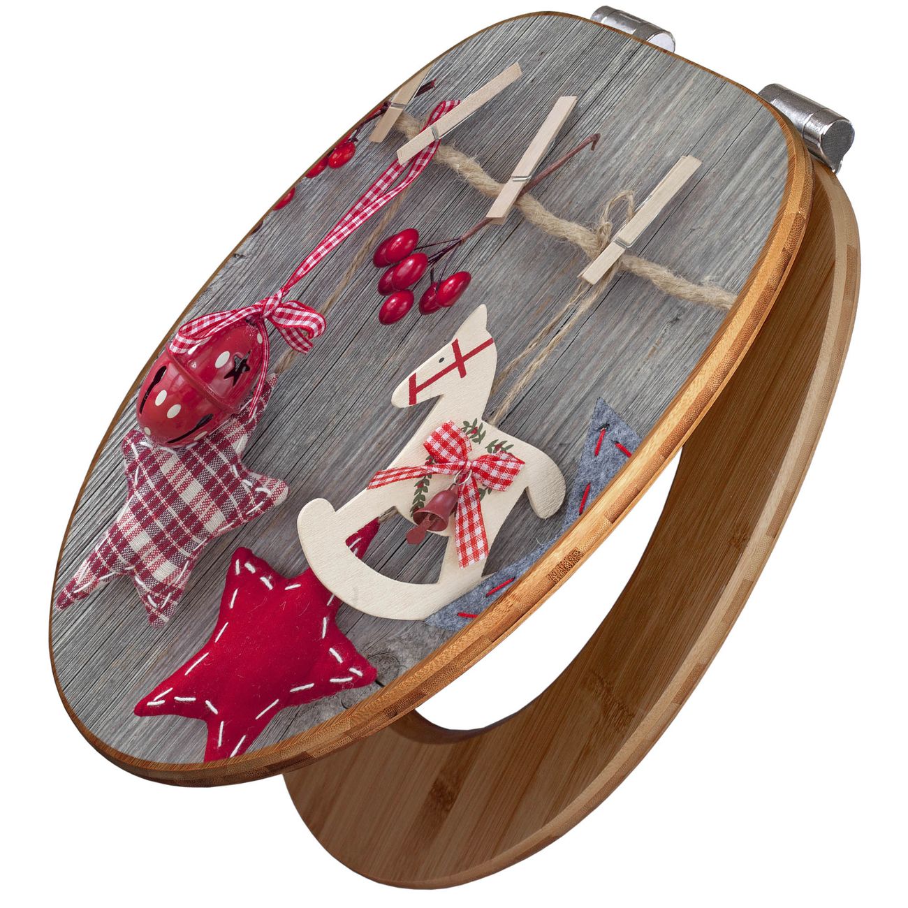 Mit dem banjado Toilettensitz in Bambus verbinden Sie Design und Funktionalität. Sie erhalten den WC-Sitz mit bewährter Holz Qualität und Universal Scharnieren. Das Motiv Motiv Winterdekoration besteht aus einer schutzlaminierten Motivfolie, die durch das Schutzlaminat zusätzlich vor Kratzern schützt. Durch diesen Motivdruck wird der WC-Sitz zu einem Blickfang in Ihrem Bad.