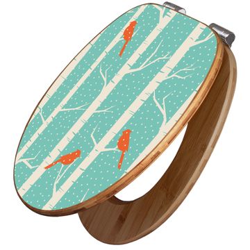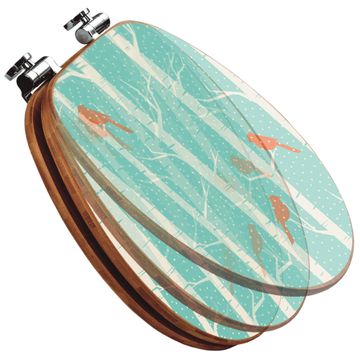 Design WC-Sitz Bambus Absenkautomatik Motiv Wintervögel