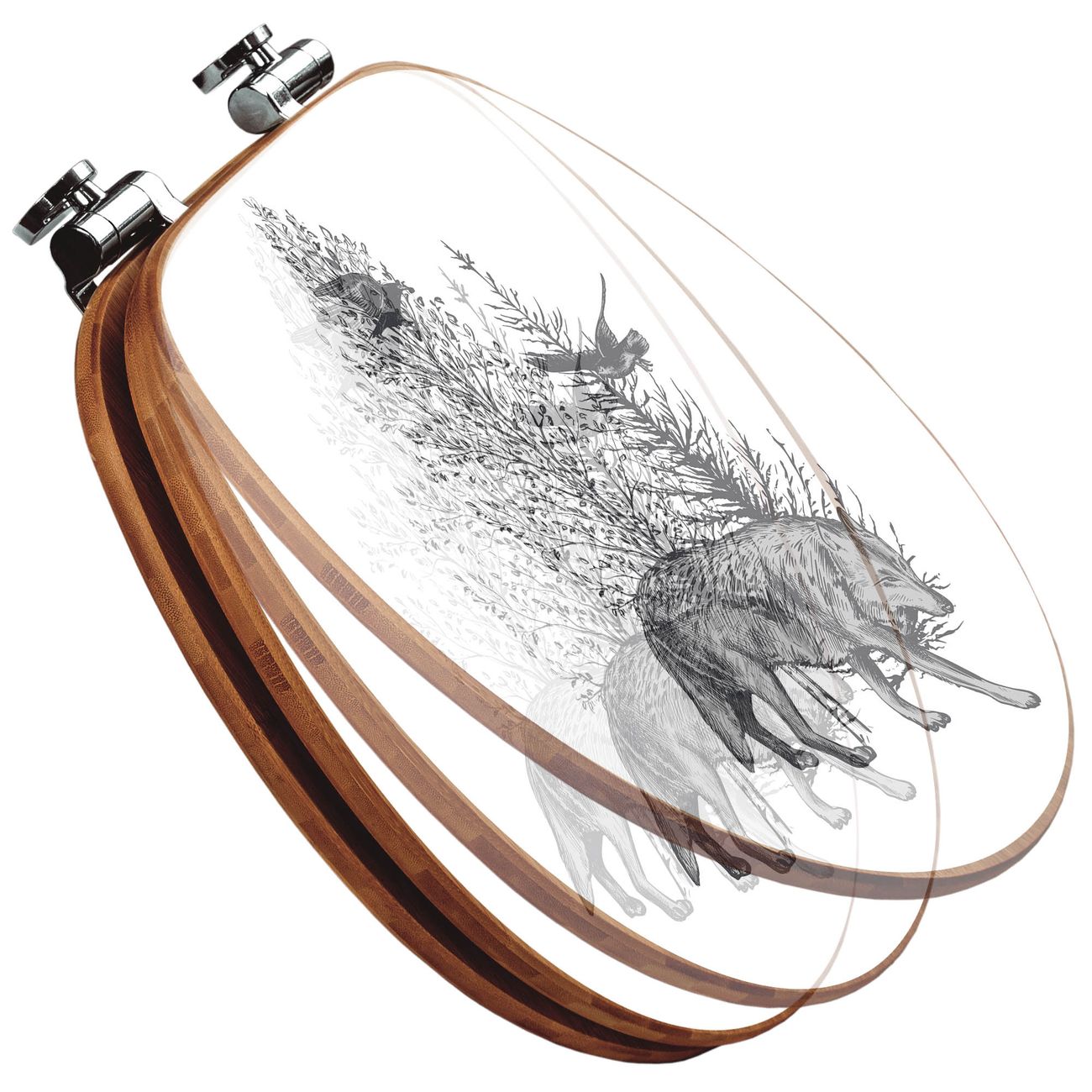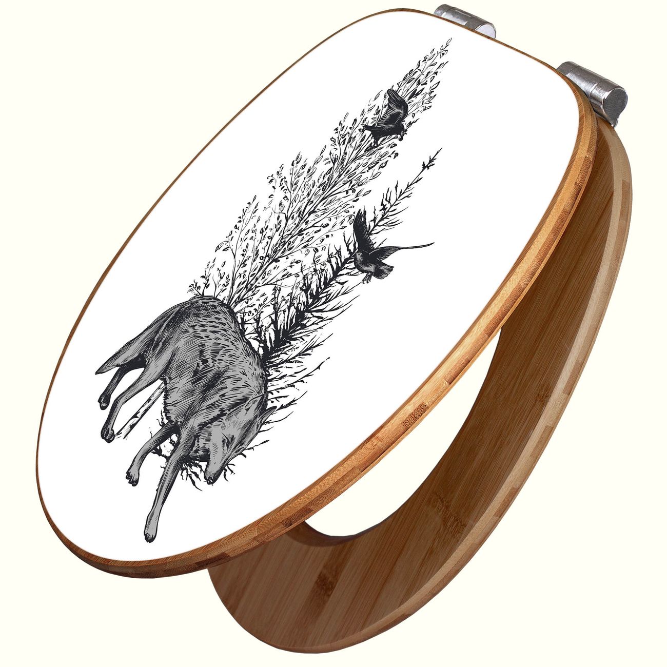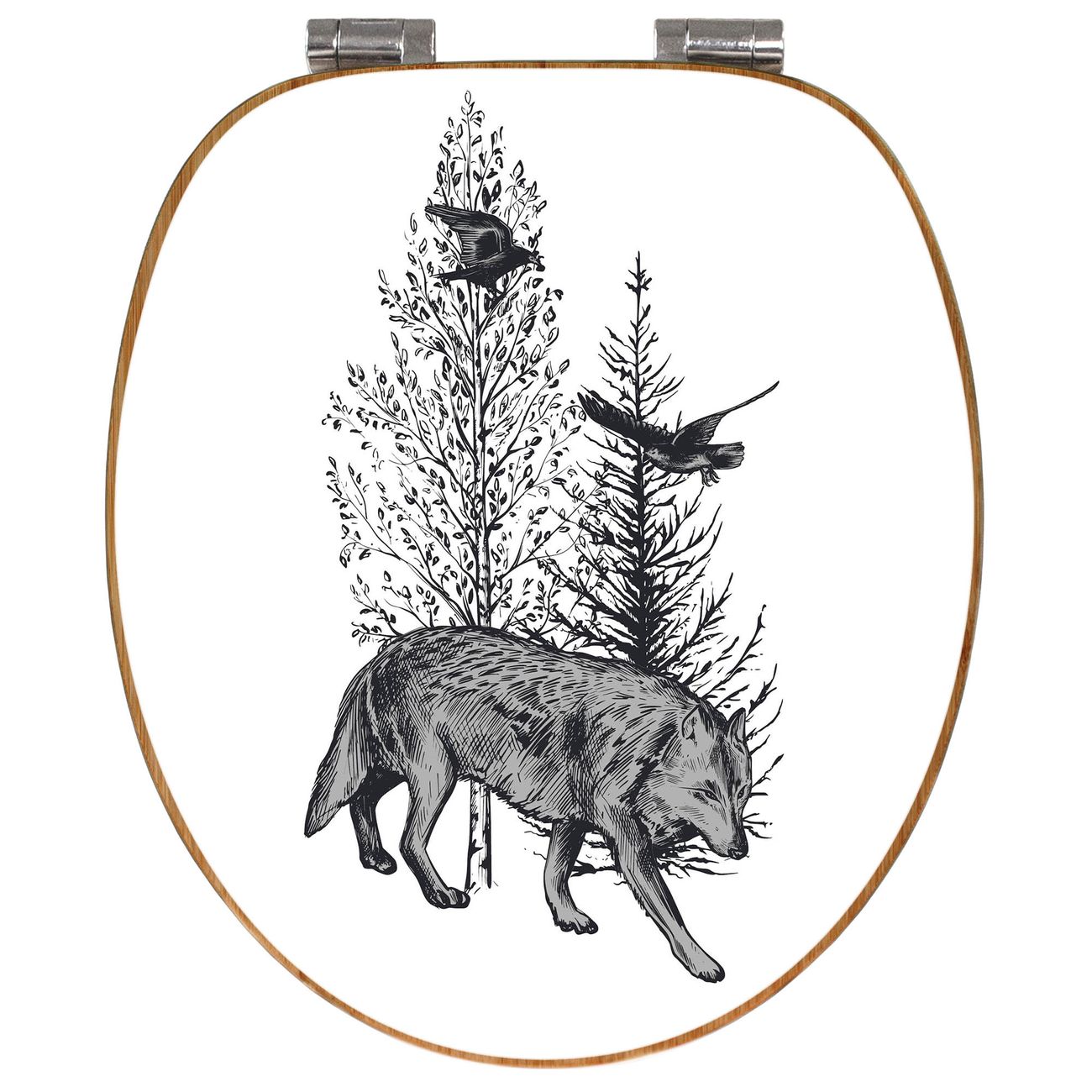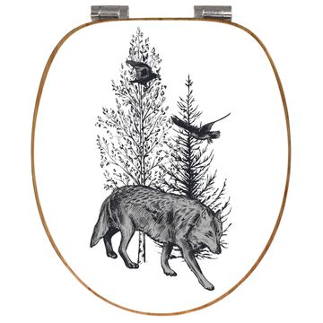 Design WC-Sitz Bambus Absenkautomatik Motiv Wolf in Schwarz-Weiß