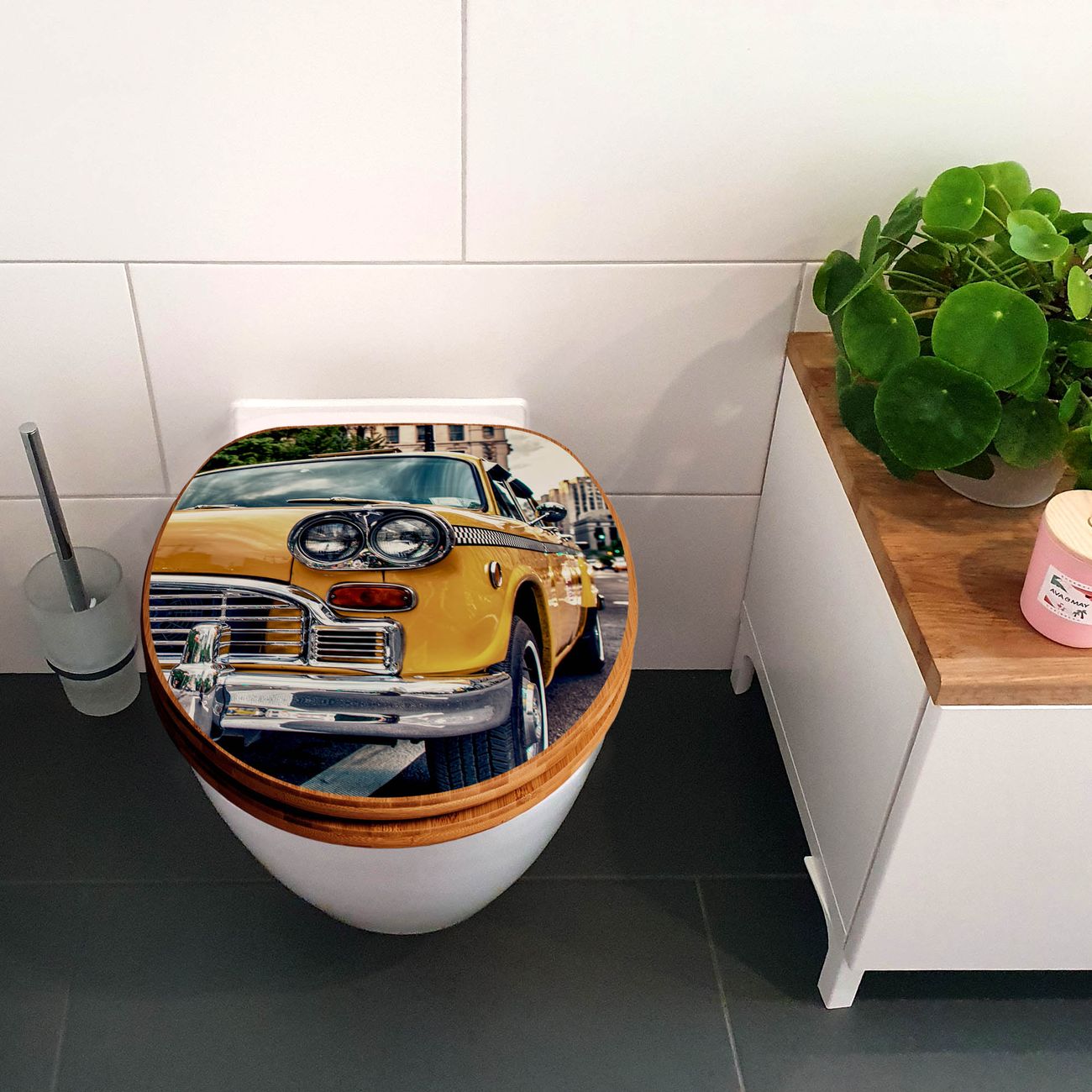 Design WC-Sitz Bambus Absenkautomatik Motiv Yellow Cab