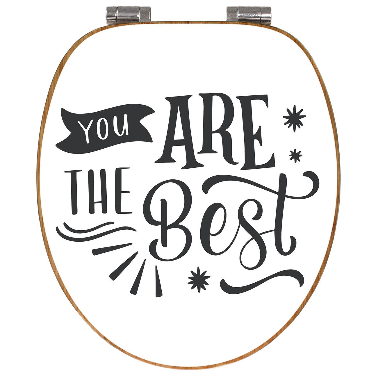 Mit dem banjado Toilettensitz in Bambus verbinden Sie Design und Funktionalität. Sie erhalten den WC-Sitz mit bewährter Holz Qualität und Universal Scharnieren. Das Motiv Motiv You are the Best besteht aus einer schutzlaminierten Motivfolie, die durch das Schutzlaminat zusätzlich vor Kratzern schützt. Durch diesen Motivdruck wird der WC-Sitz zu einem Blickfang in Ihrem Bad.