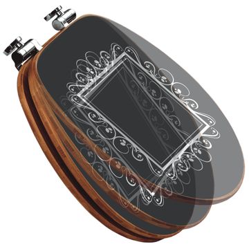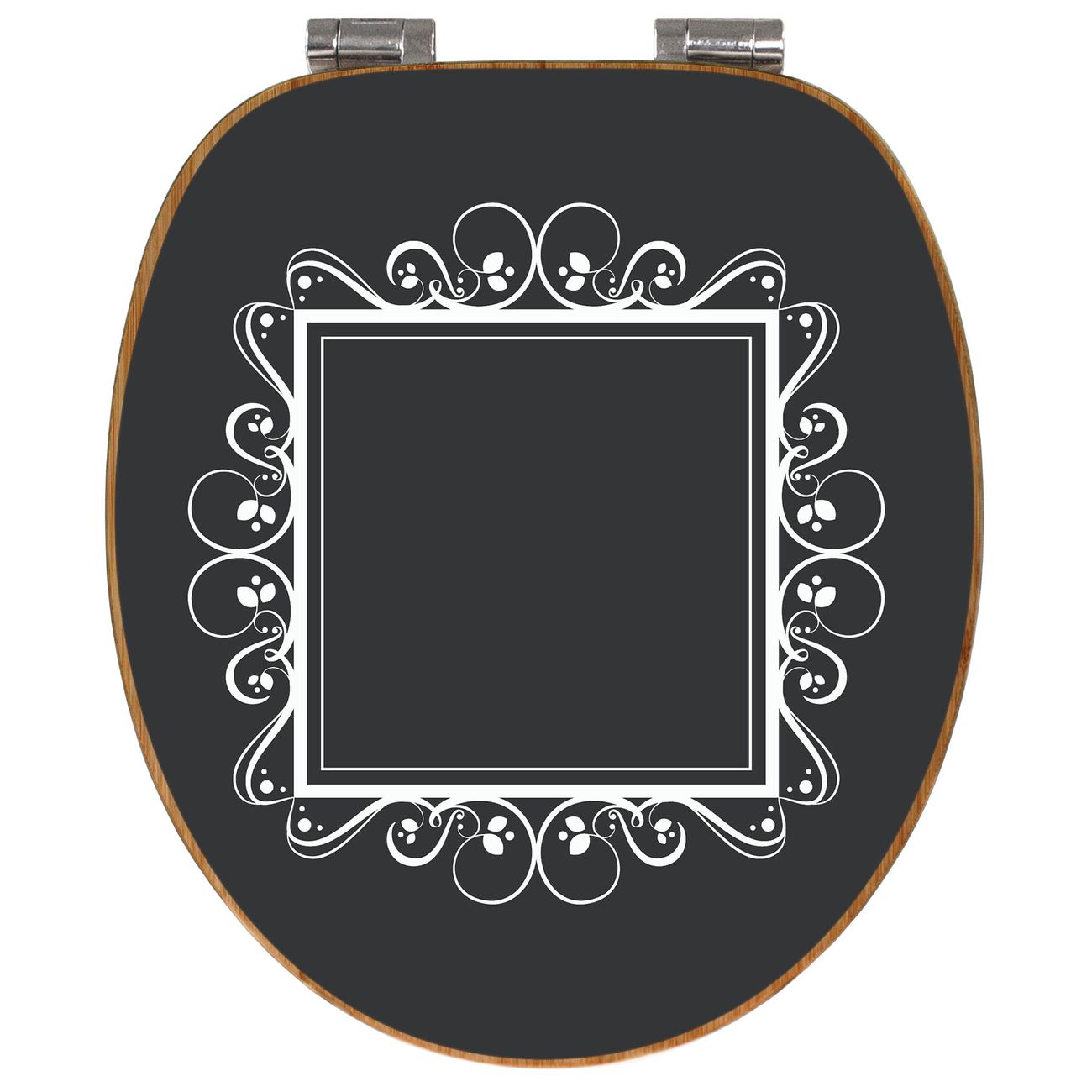 Design WC-Sitz Bambus Absenkautomatik Motiv Zierrahmen Grau-Weiß