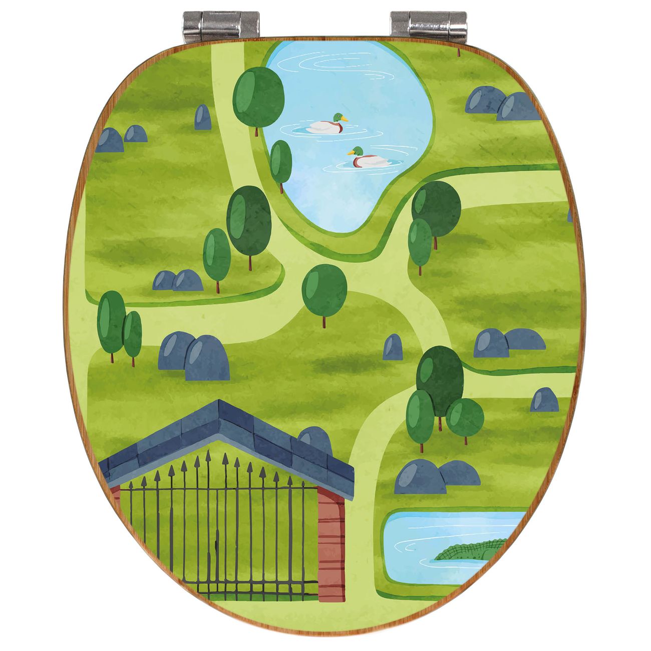 Mit dem banjado Toilettensitz in Bambus verbinden Sie Design und Funktionalität. Sie erhalten den WC-Sitz mit bewährter Holz Qualität und Universal Scharnieren. Das Motiv Motiv Zoofläche besteht aus einer schutzlaminierten Motivfolie, die durch das Schutzlaminat zusätzlich vor Kratzern schützt. Durch diesen Motivdruck wird der WC-Sitz zu einem Blickfang in Ihrem Bad.