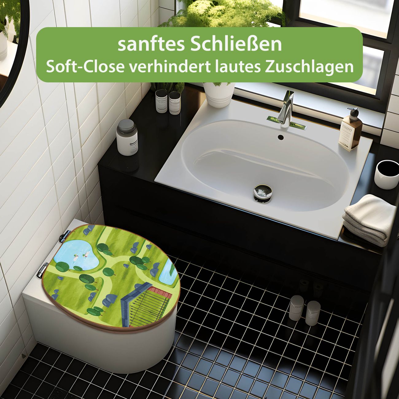 Design WC-Sitz Bambus Absenkautomatik Motiv Zoofläche