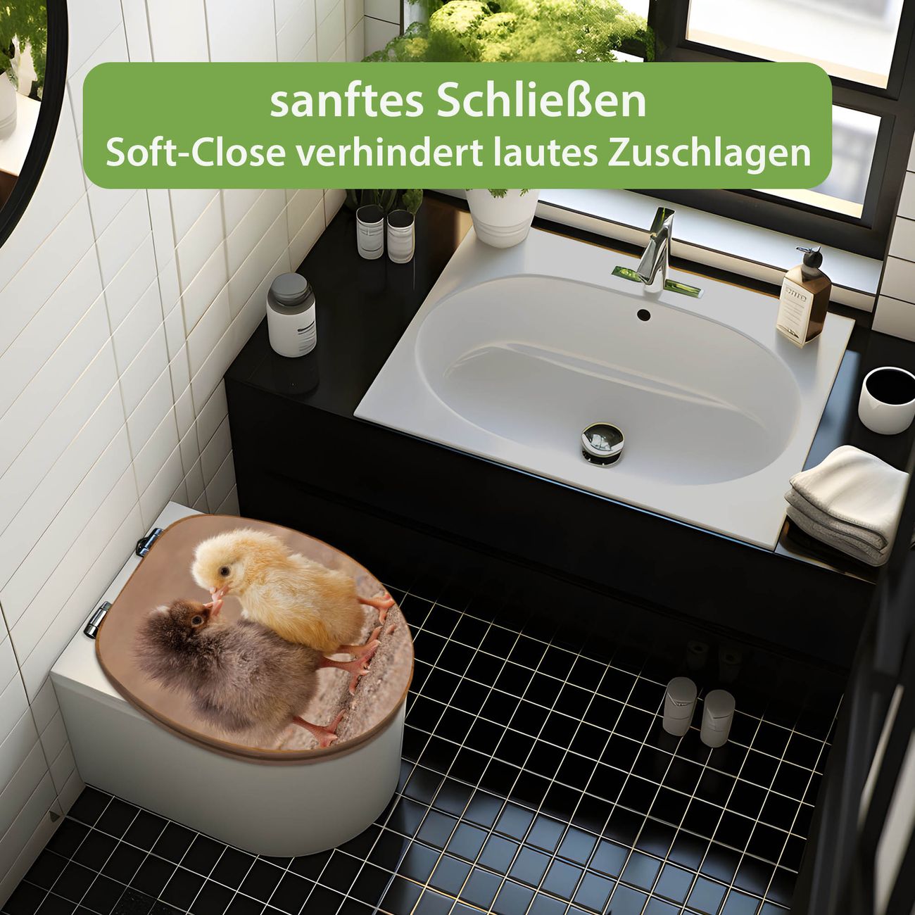 Design WC-Sitz Bambus Absenkautomatik Motiv Zwei Küken