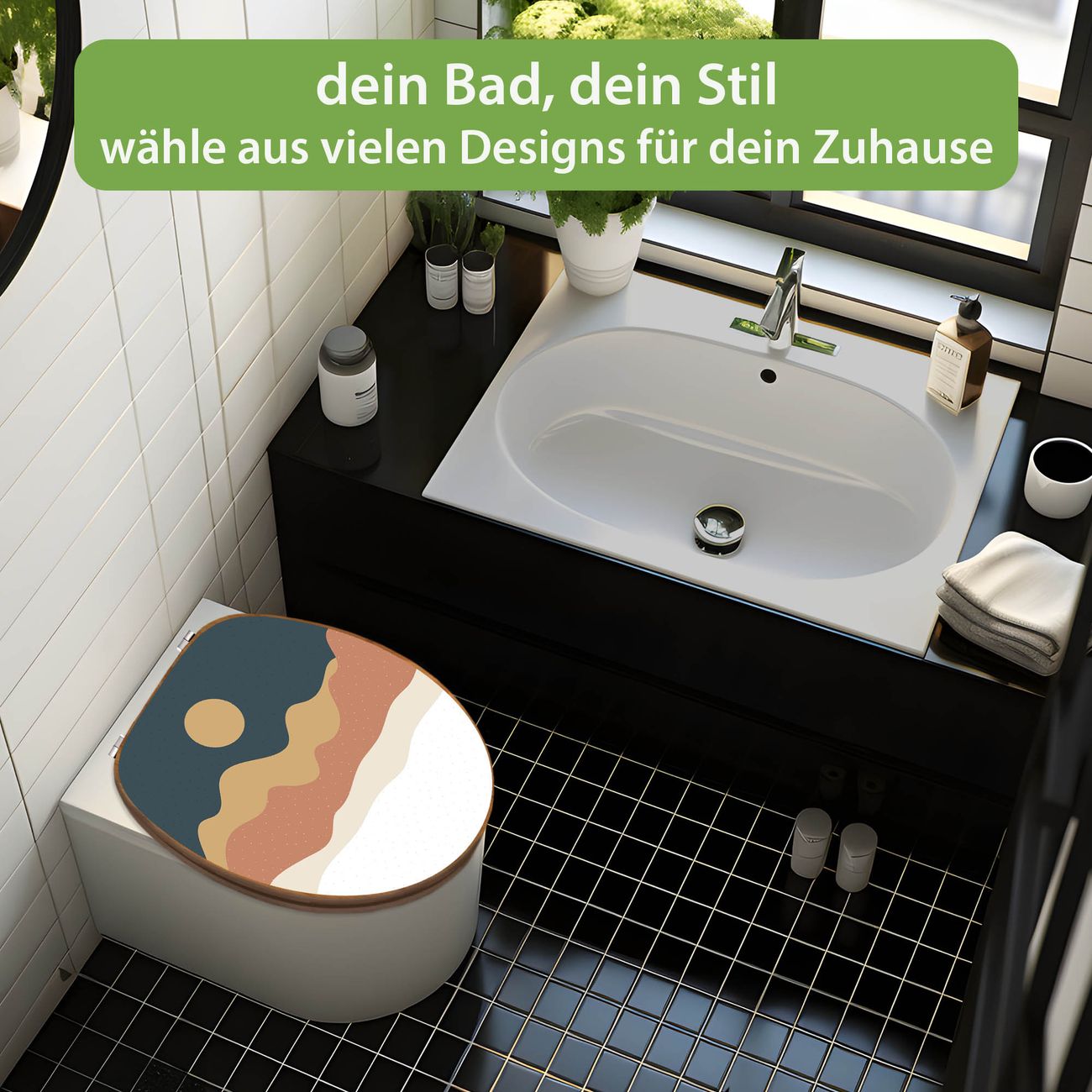 Design WC-Sitz Bambus Holz Motiv Abstrakte Wüstenlandschaft