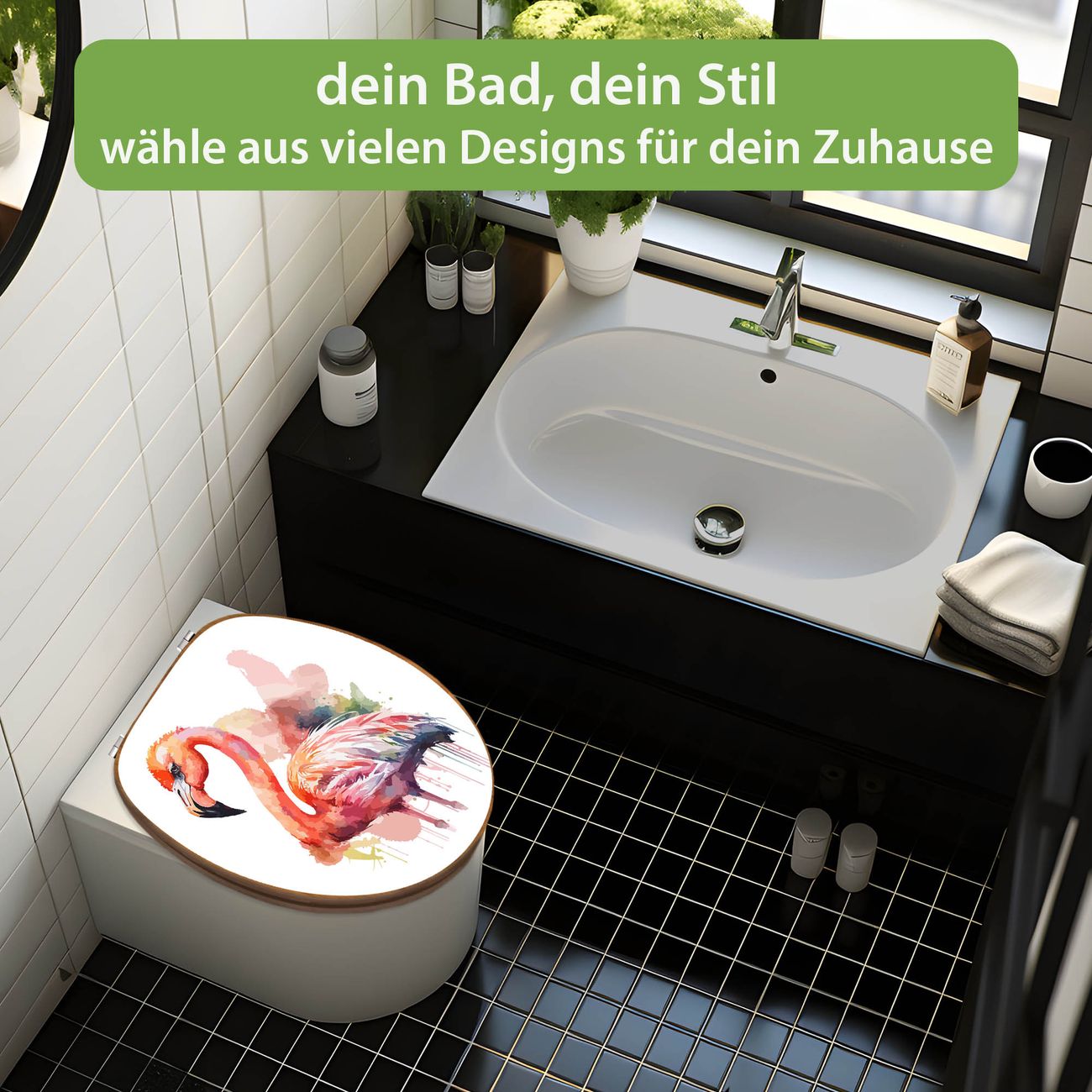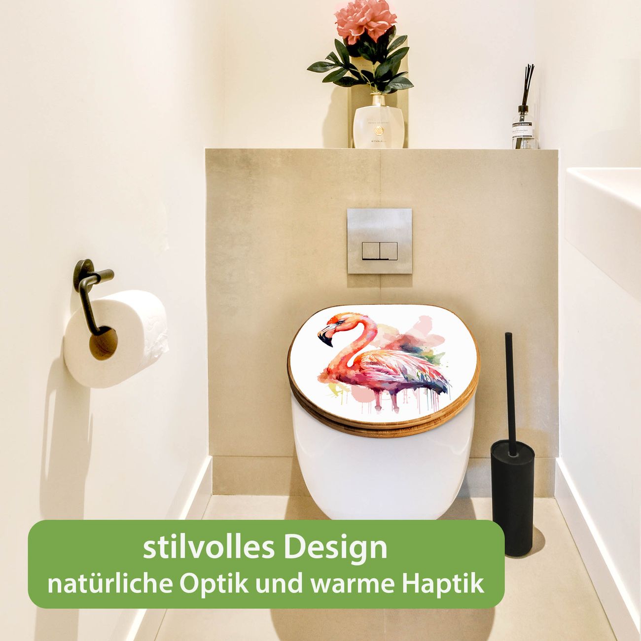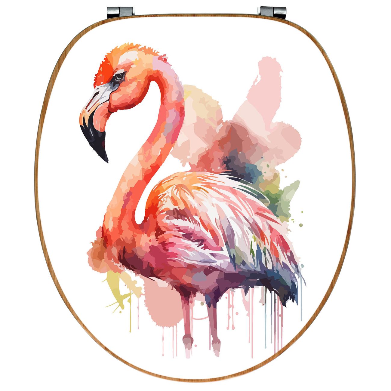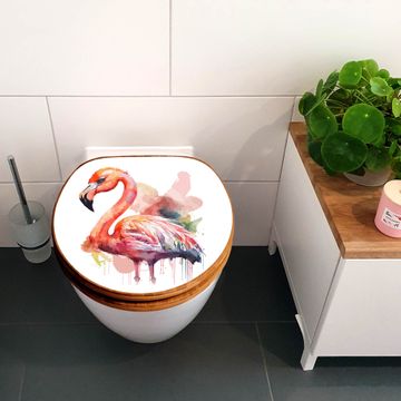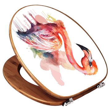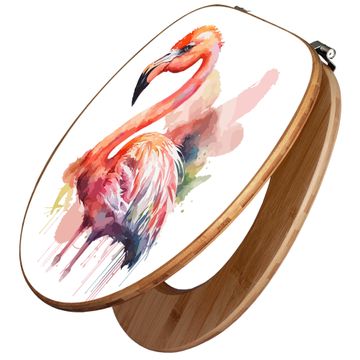 Design WC-Sitz Bambus Holz Motiv Aquarell-Flamingo
