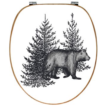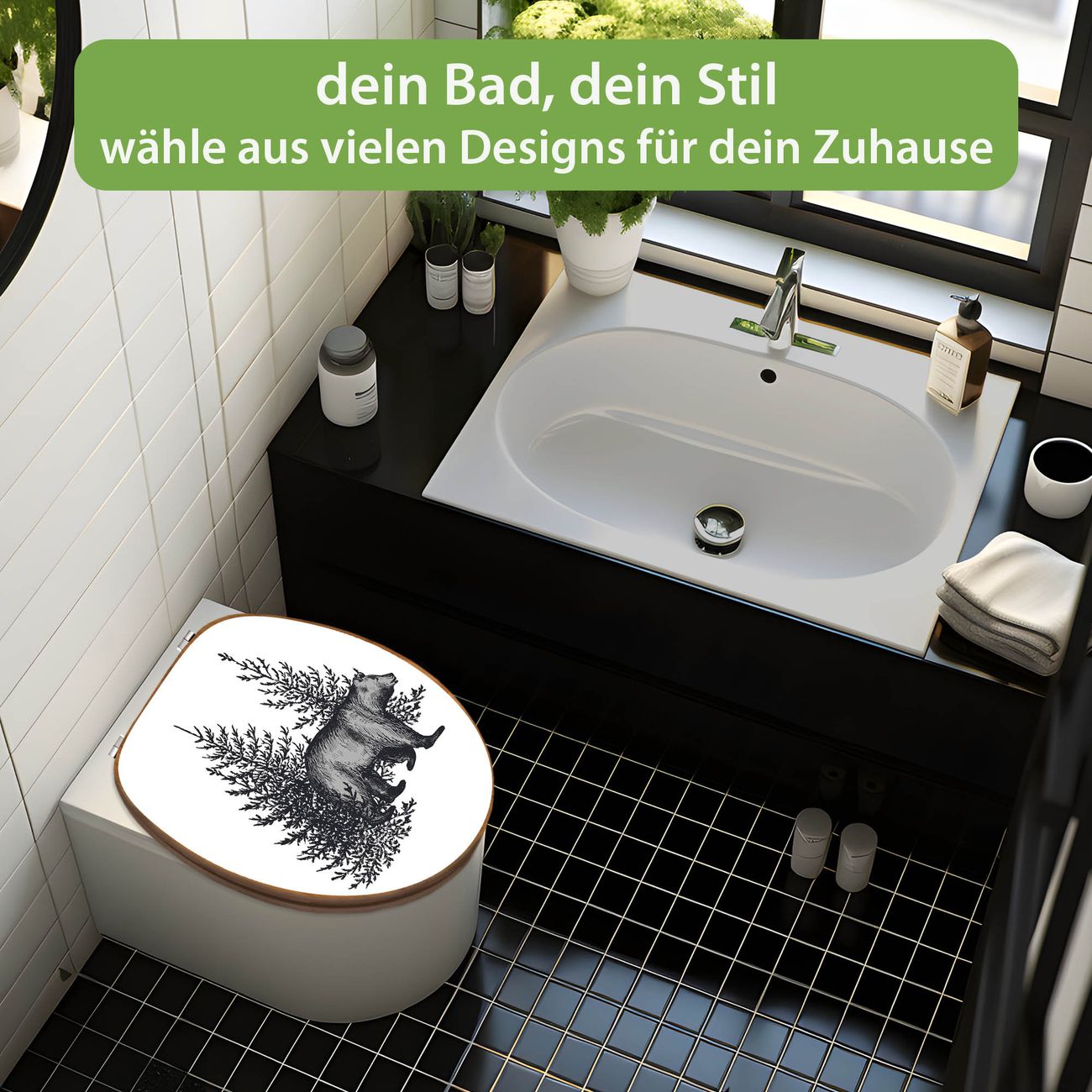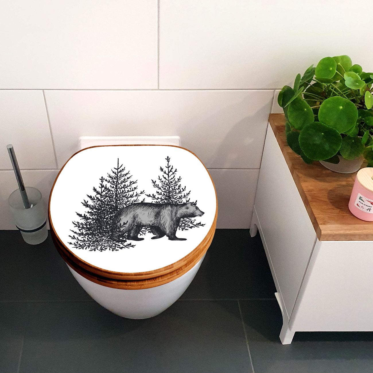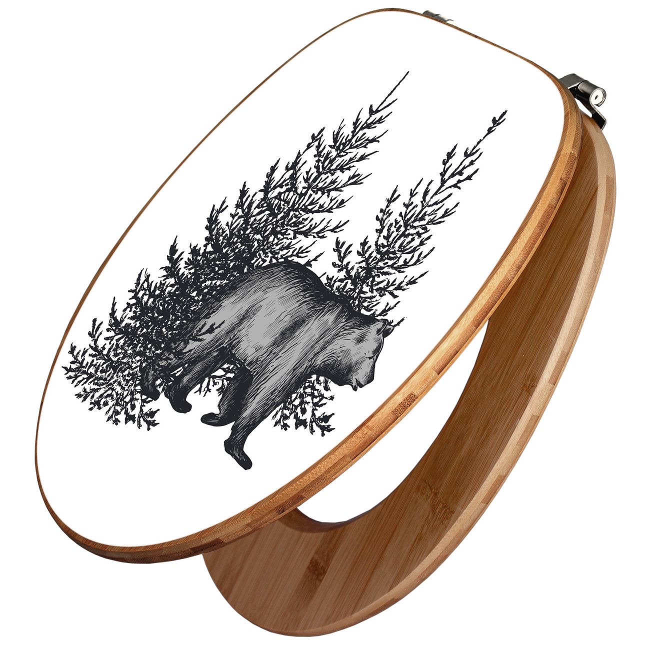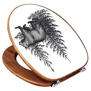 Design WC-Sitz Bambus Holz Motiv Bär in Schwarz-Weiß