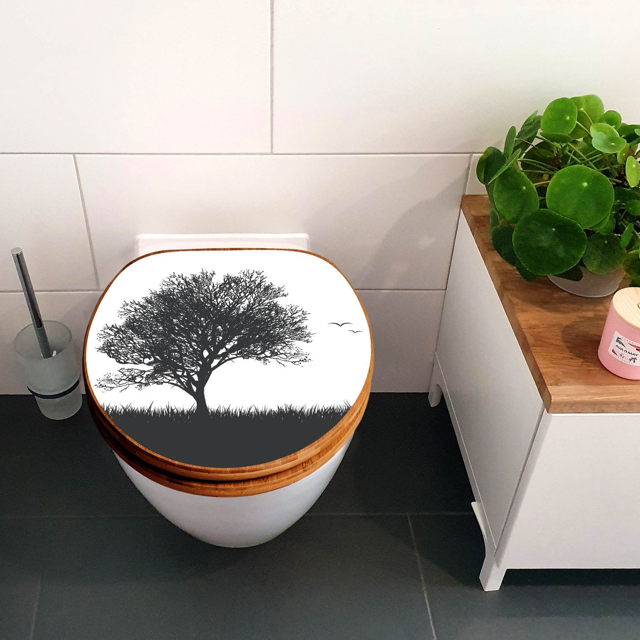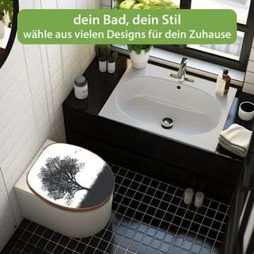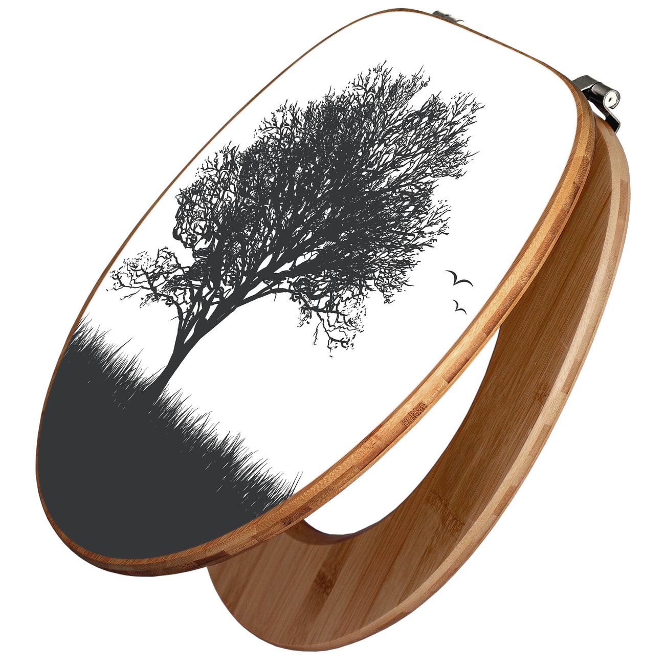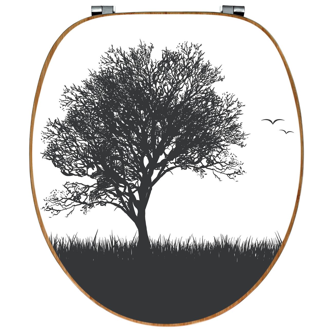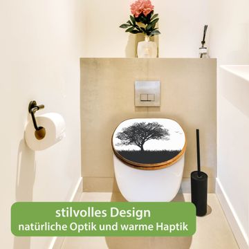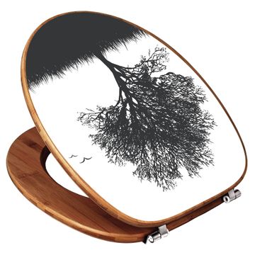 Design WC-Sitz Bambus Holz Motiv Baum und Vögel Silhouette