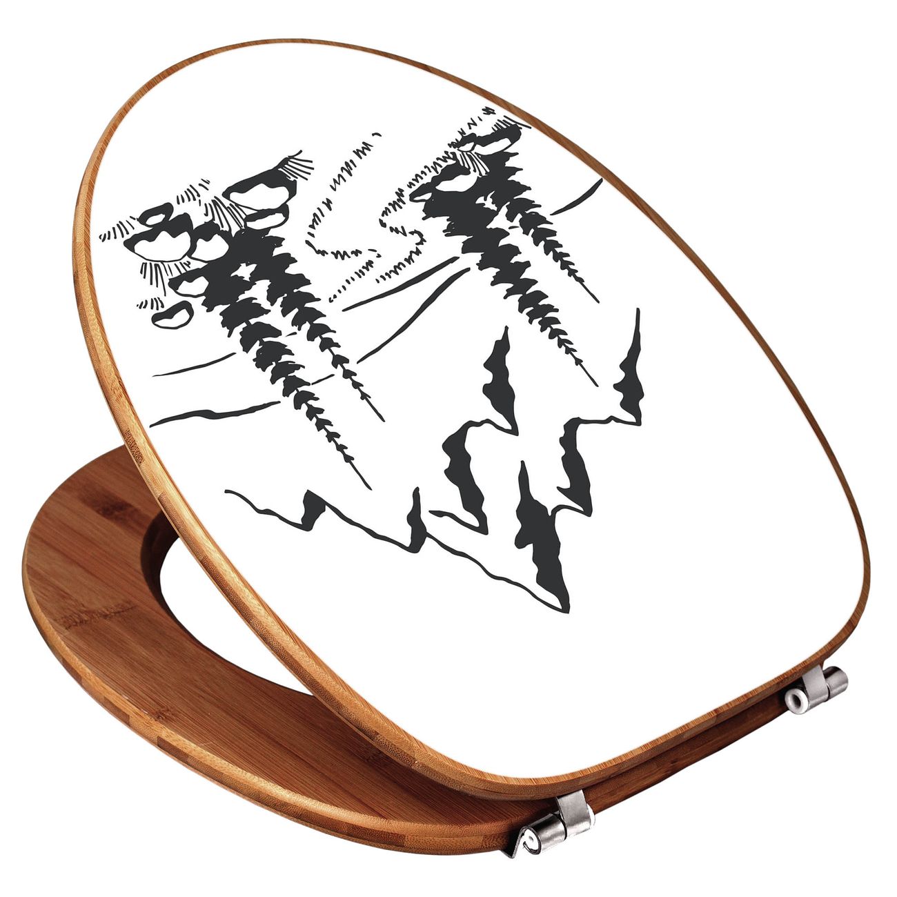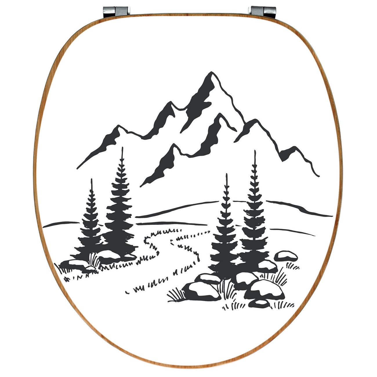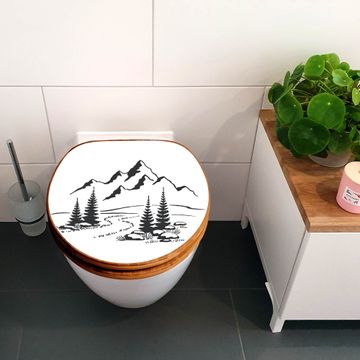 Design WC-Sitz Bambus Holz Motiv Berglandschaft Zeichnung