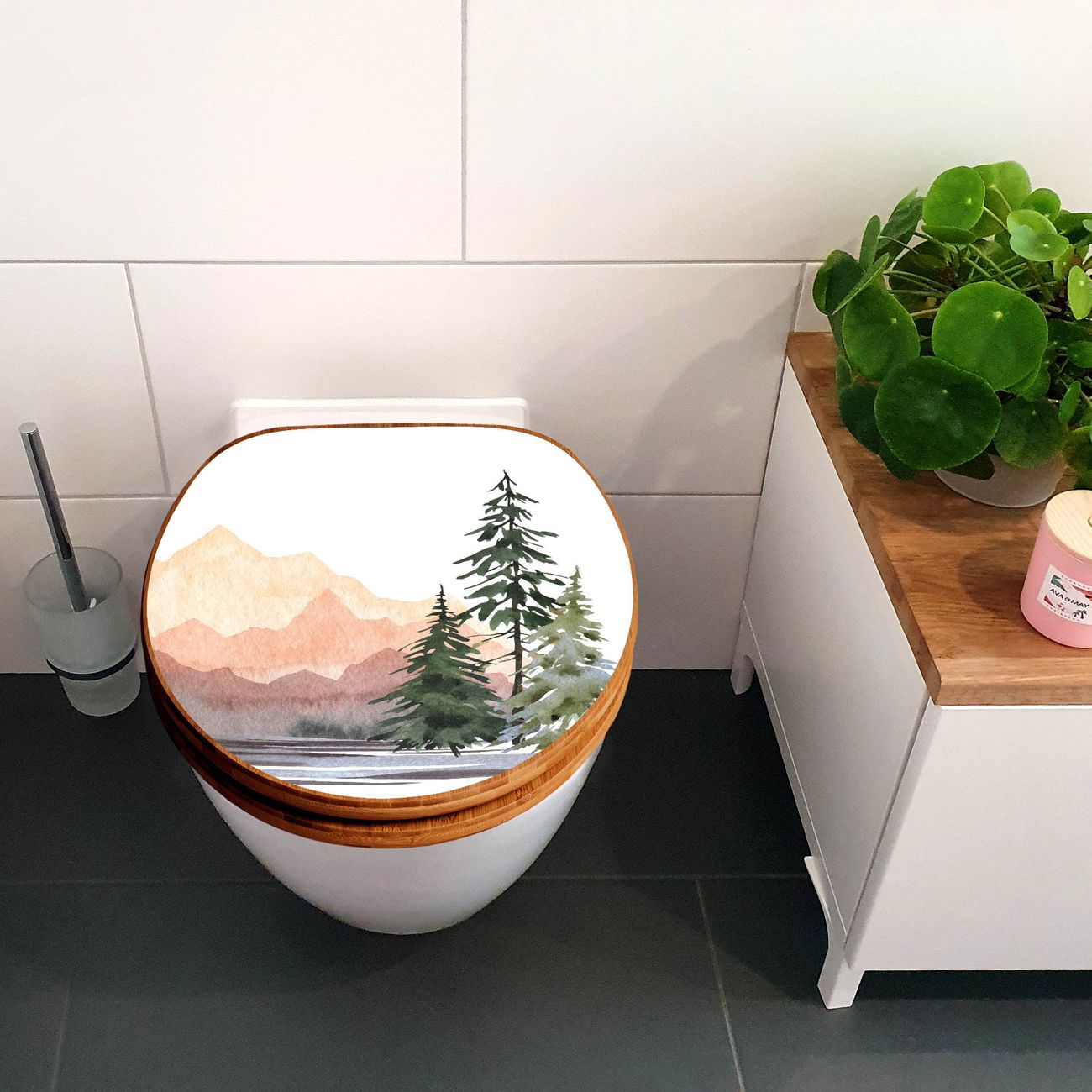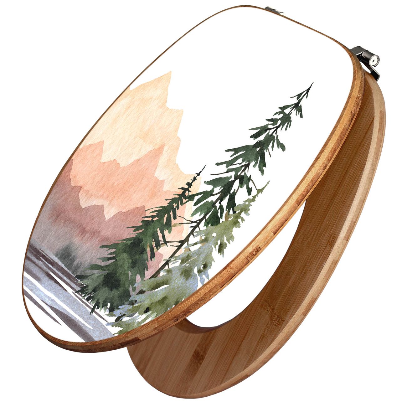 Design WC-Sitz Bambus Holz Motiv Bergpanorama