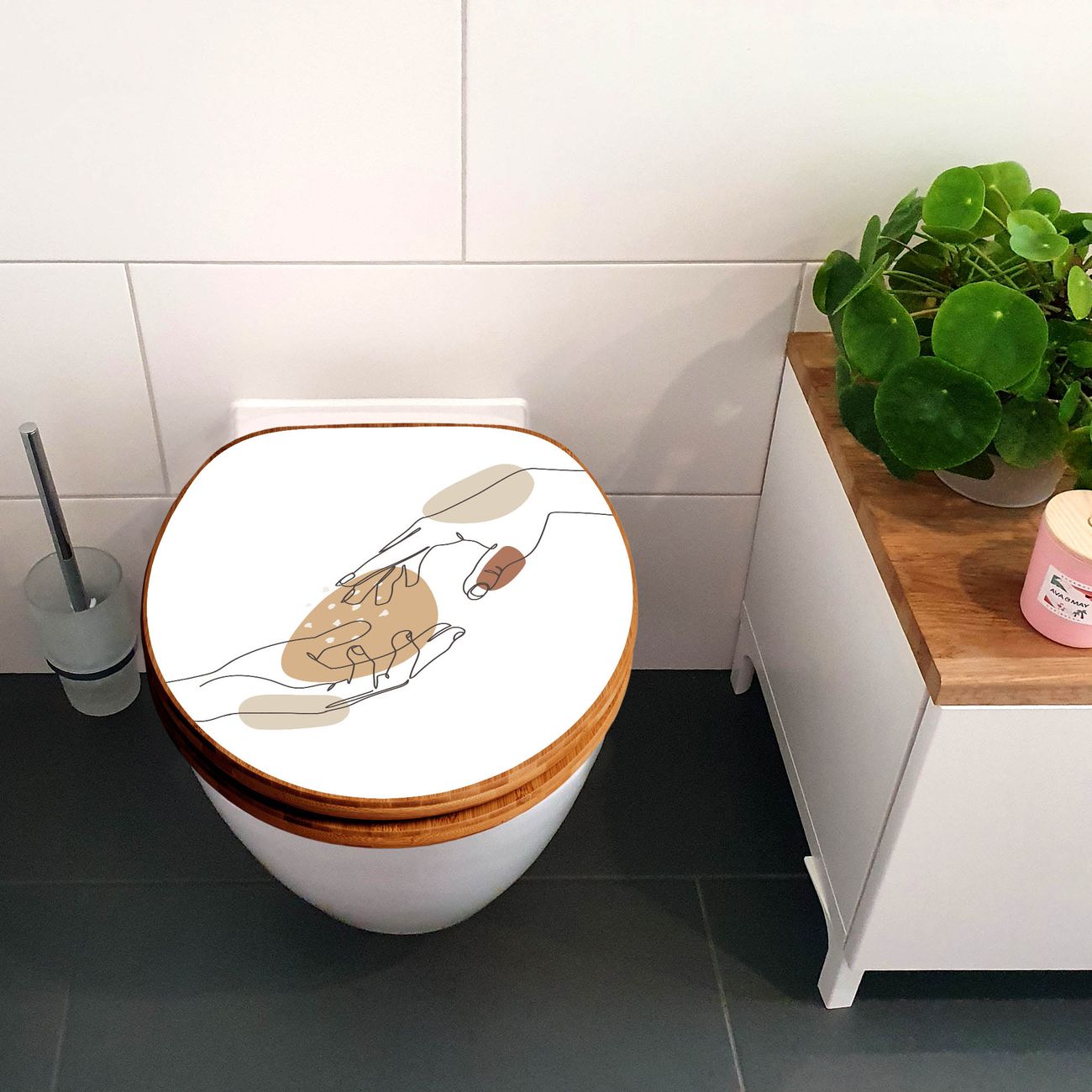 Design WC-Sitz Bambus Holz Motiv Berührende Verbindung Lineart