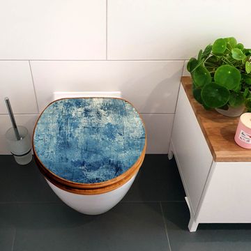 Design WC-Sitz Bambus Holz Motiv Blaue Wandtextur