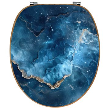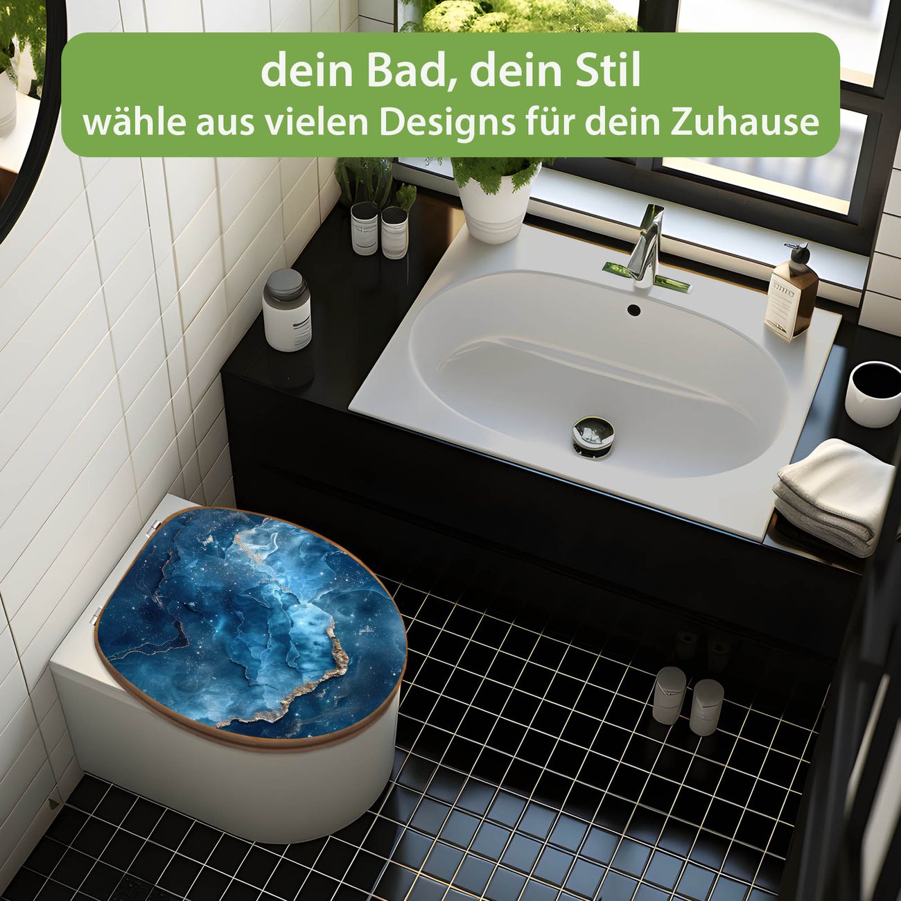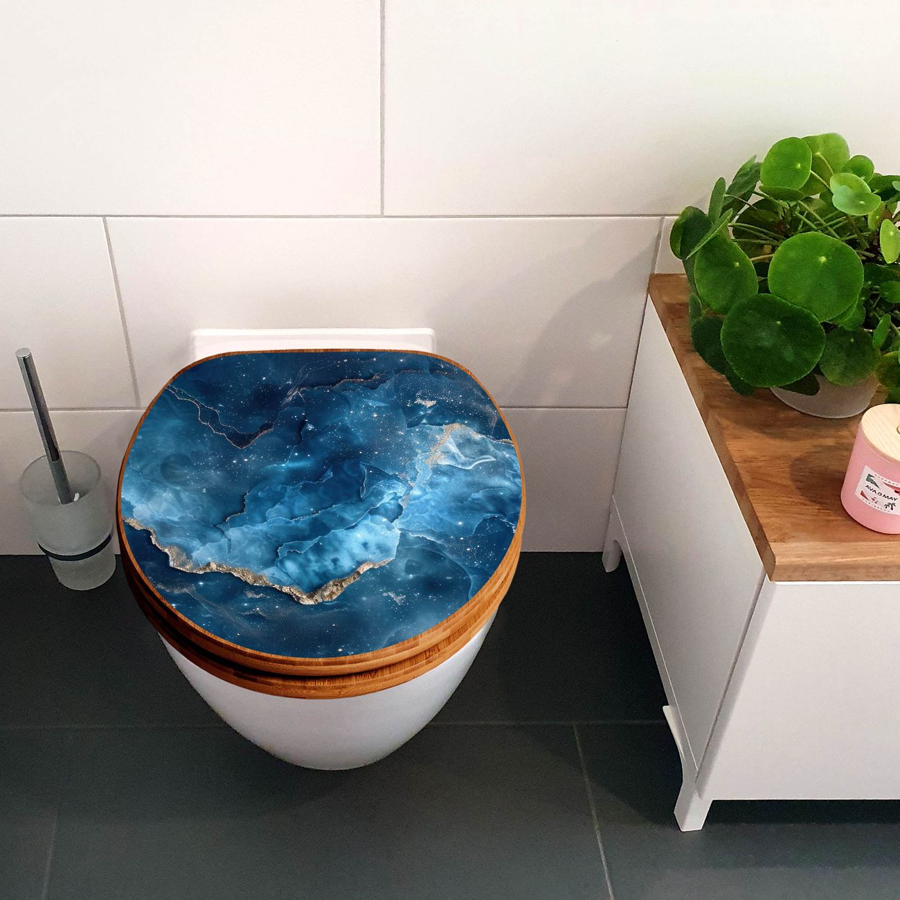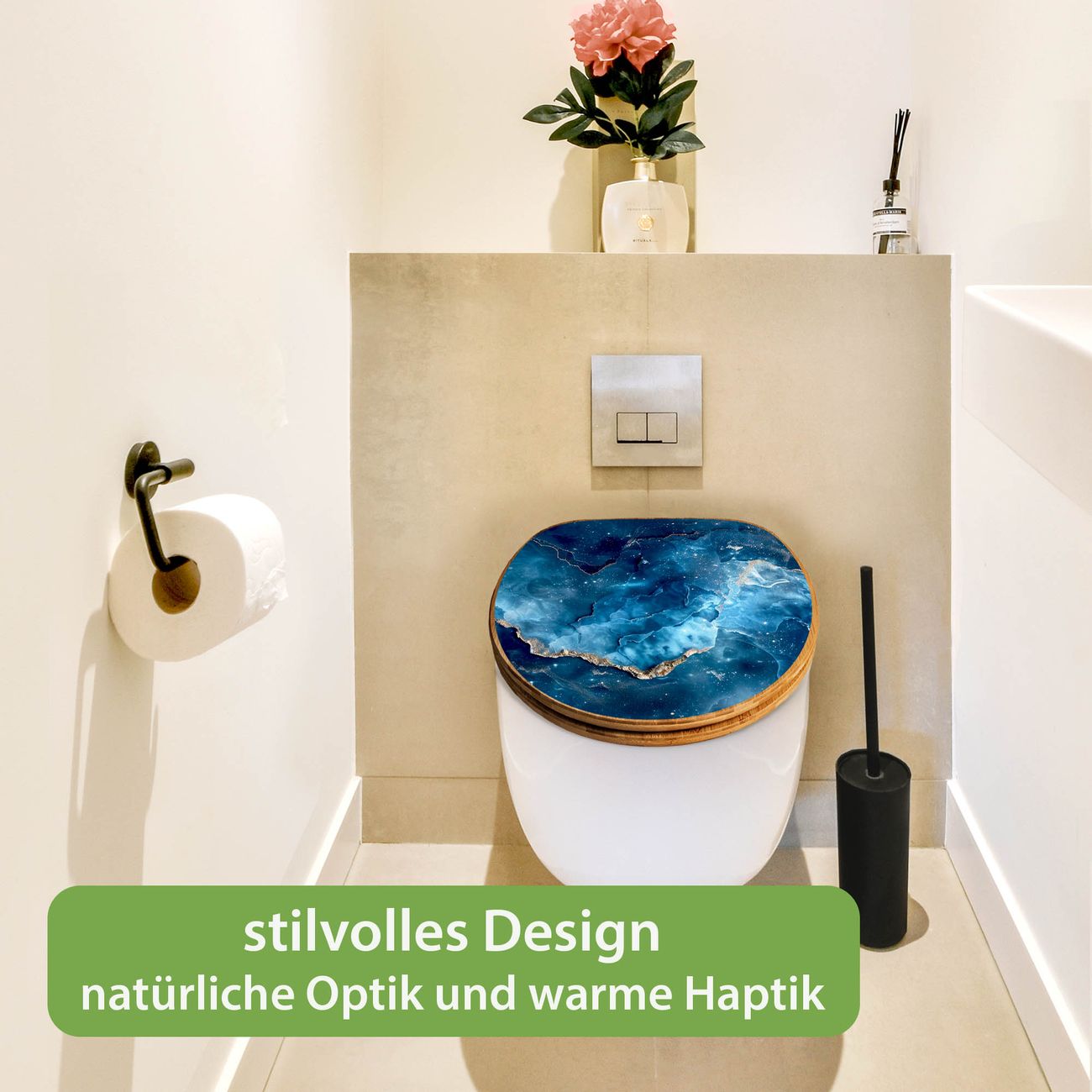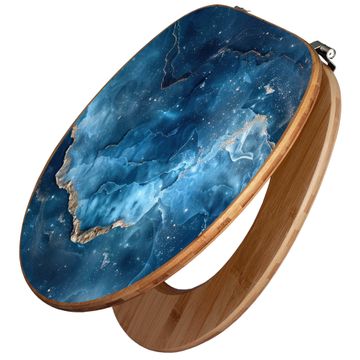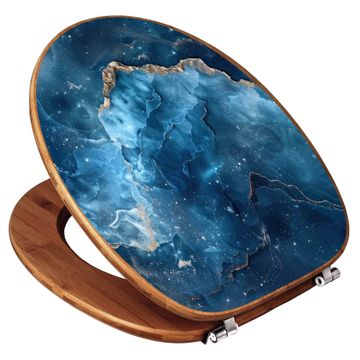 Design WC-Sitz Bambus Holz Motiv Blauer Marmor mit Gold 1