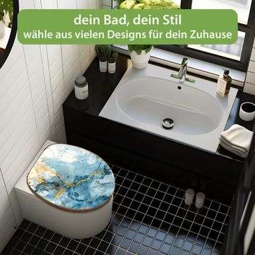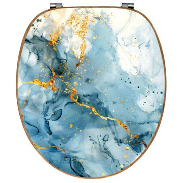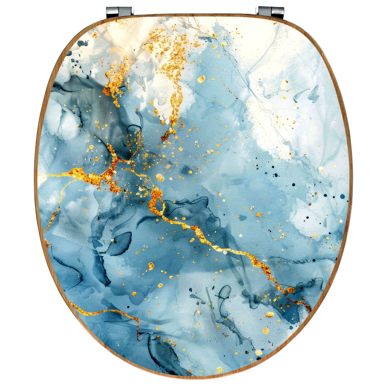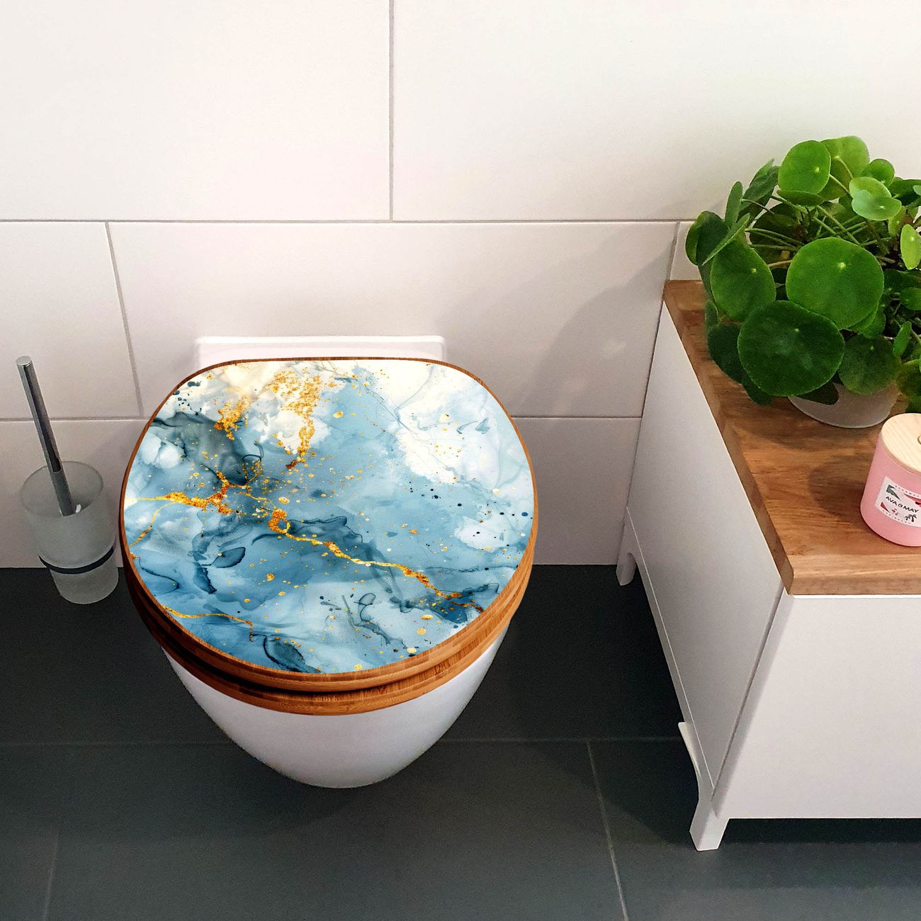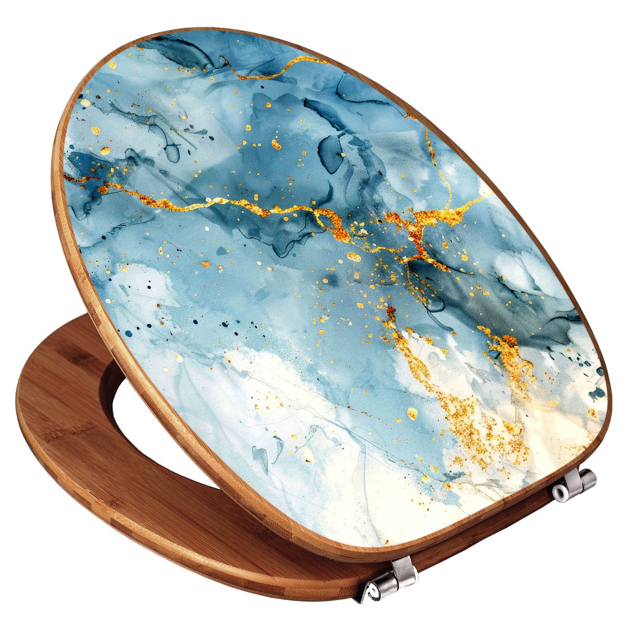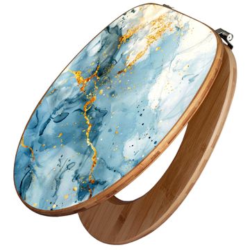 Design WC-Sitz Bambus Holz Motiv Blauer Marmor mit Gold 3