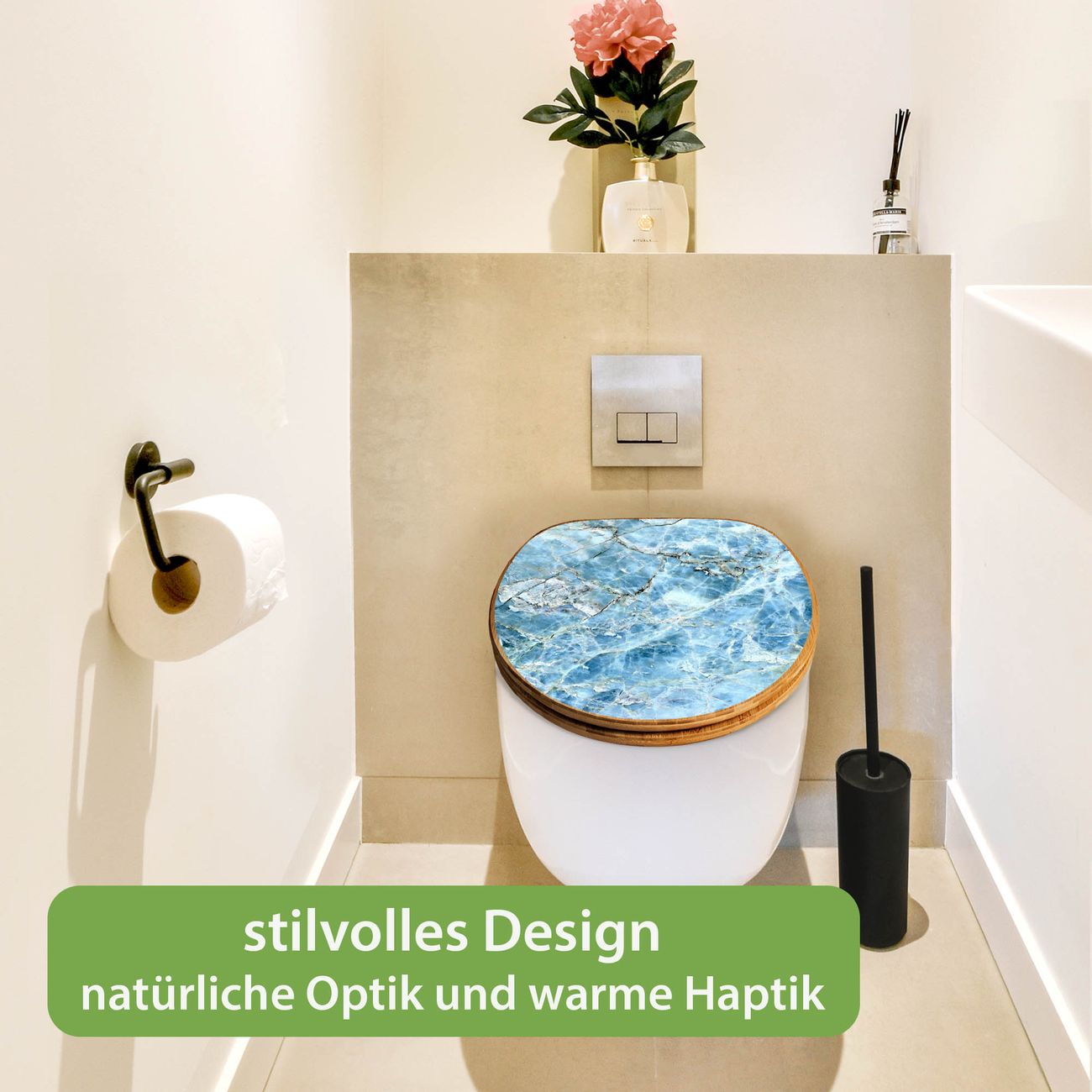 Design WC-Sitz Bambus Holz Motiv Blauer Marmor