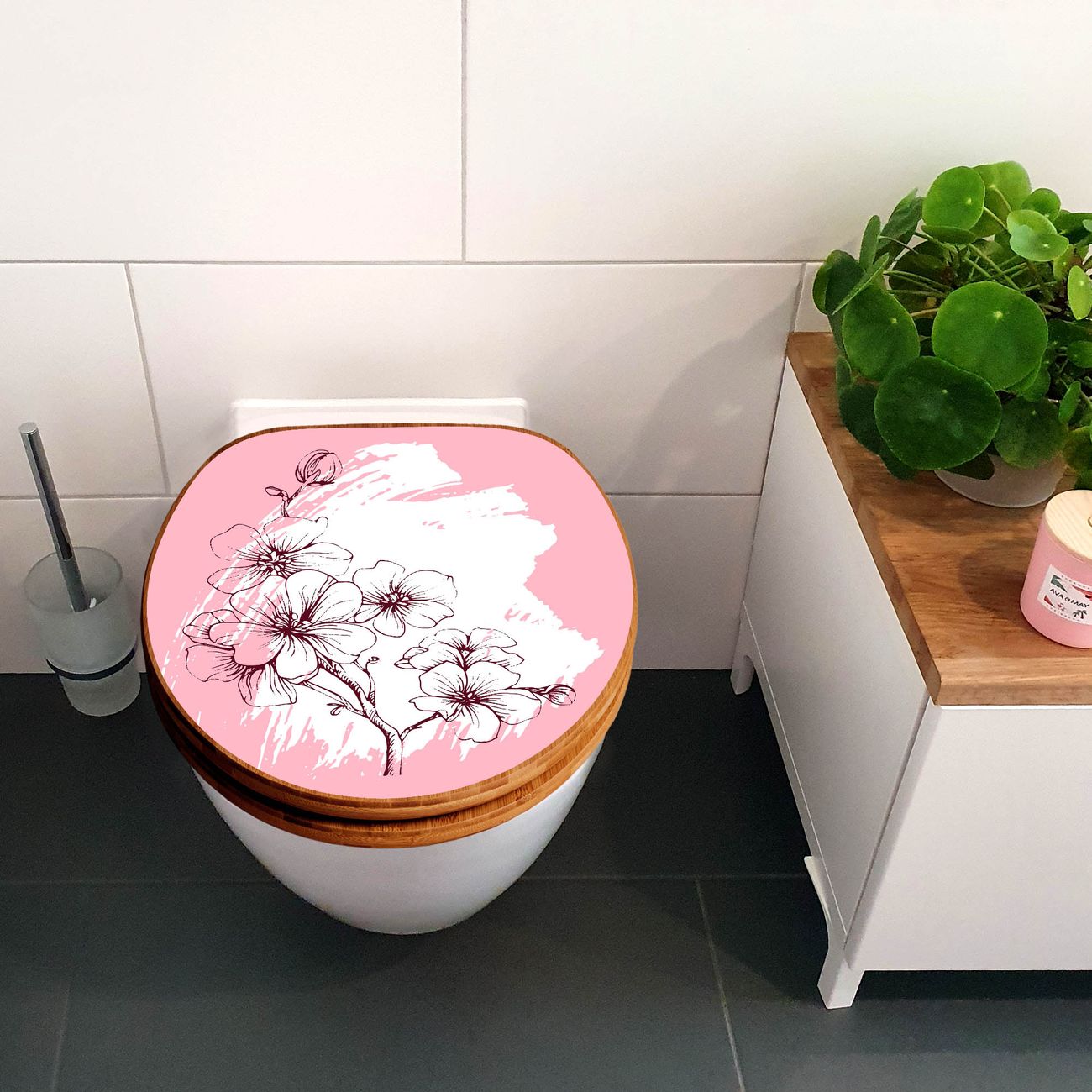 Design WC-Sitz Bambus Holz Motiv Blütenpracht
