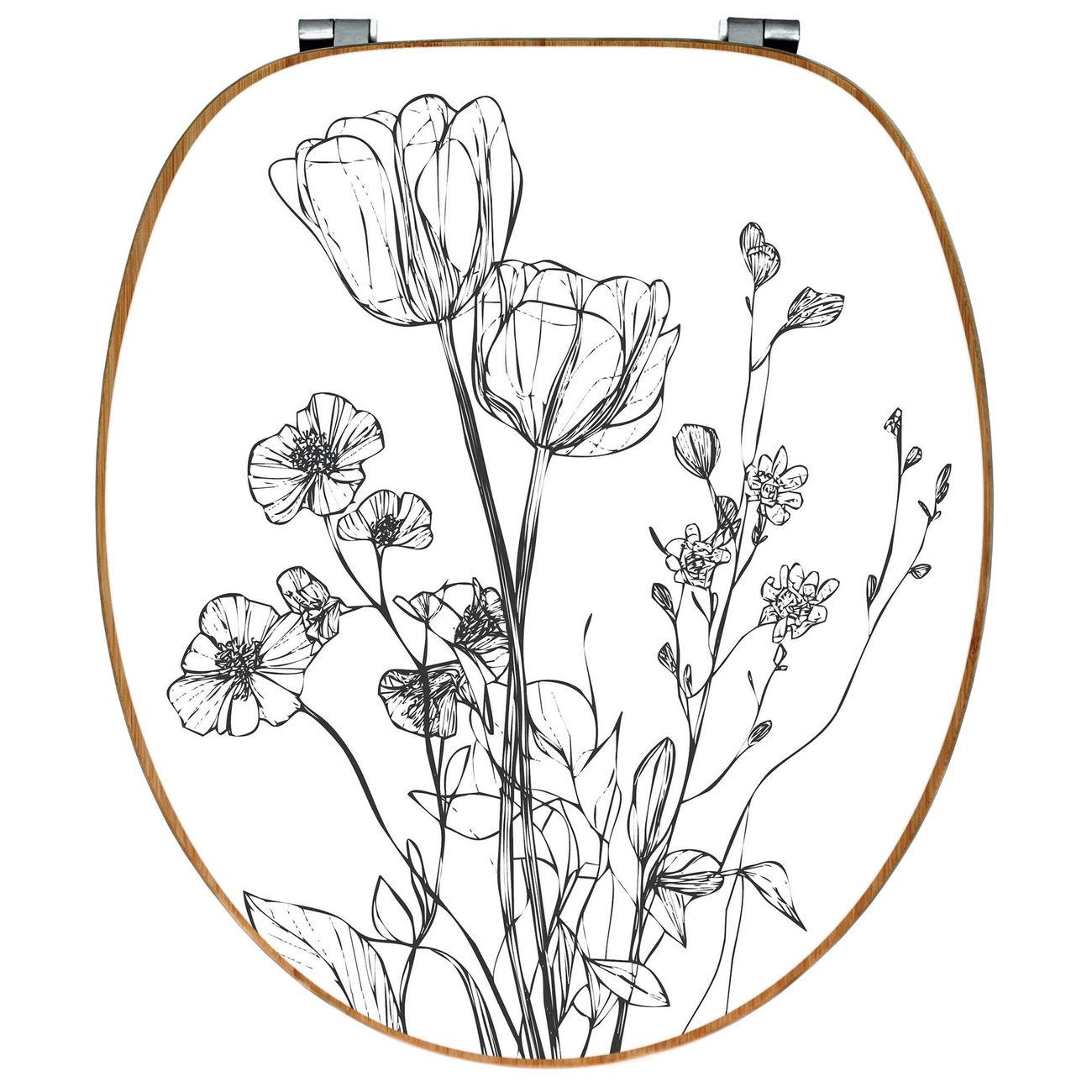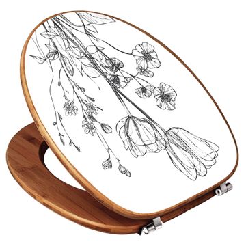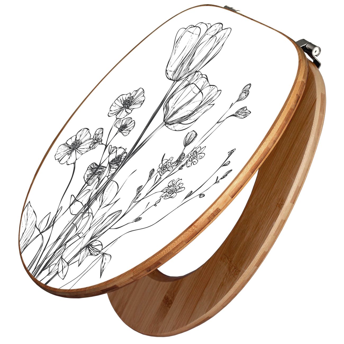 Design WC-Sitz Bambus Holz Motiv Blumenskizze