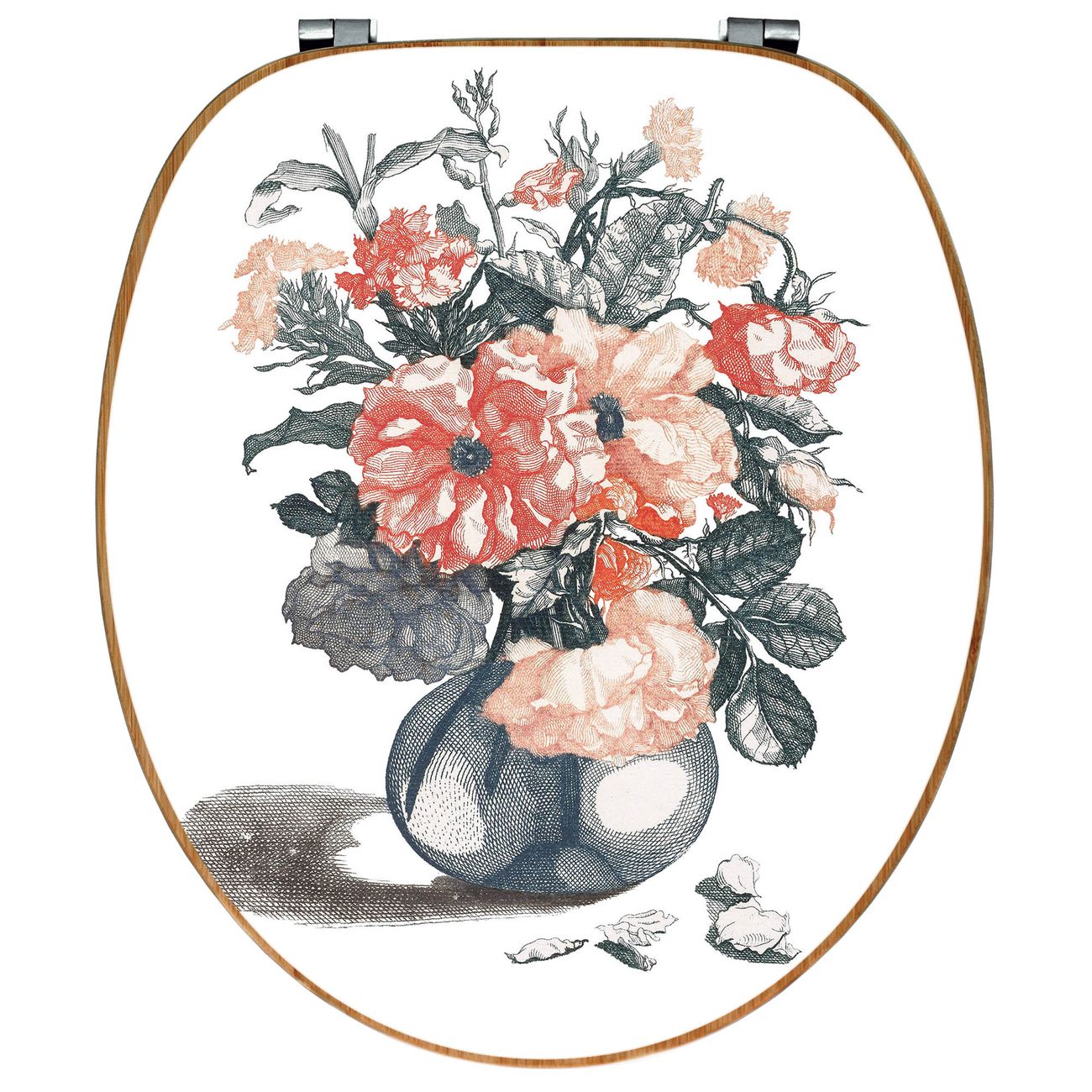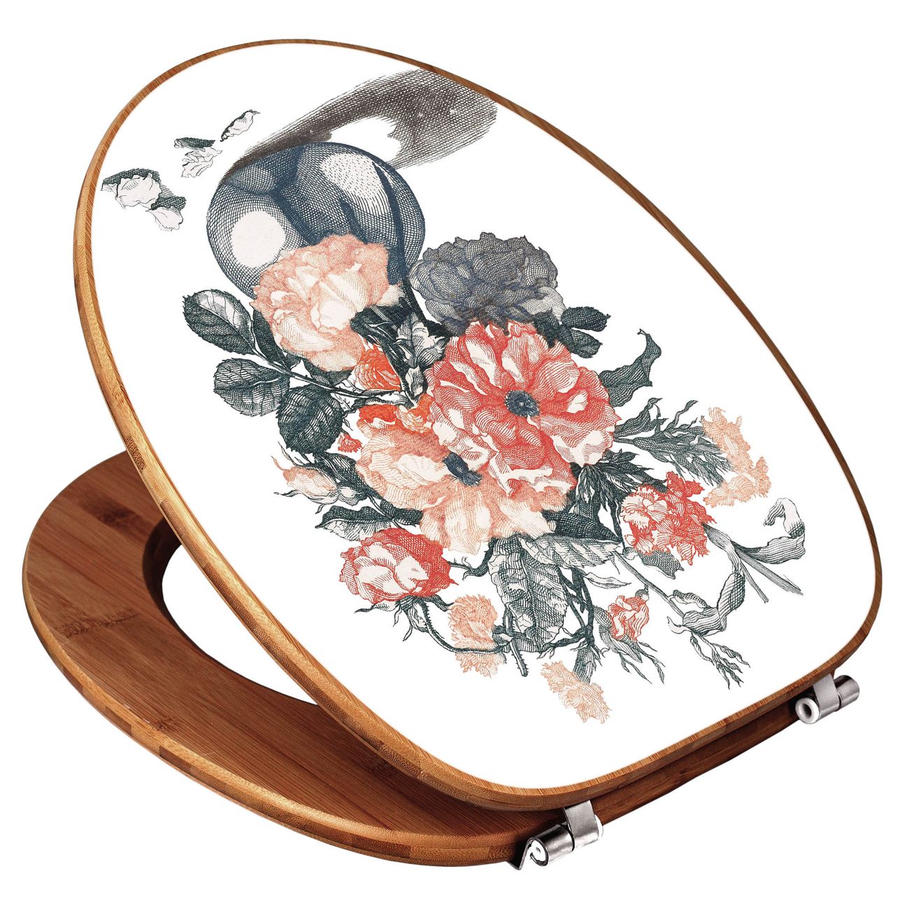 Design WC-Sitz Bambus Holz Motiv Blumenstrauß Vintage