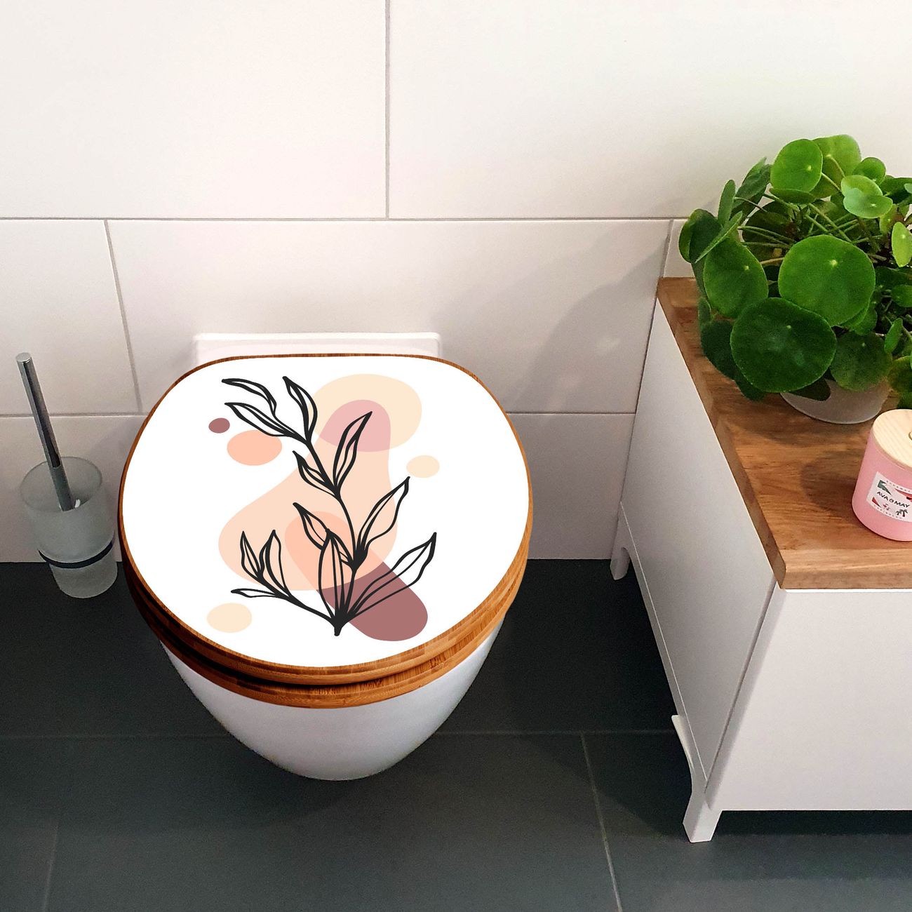 Design WC-Sitz Bambus Holz Motiv Botanische Linienkunst 2