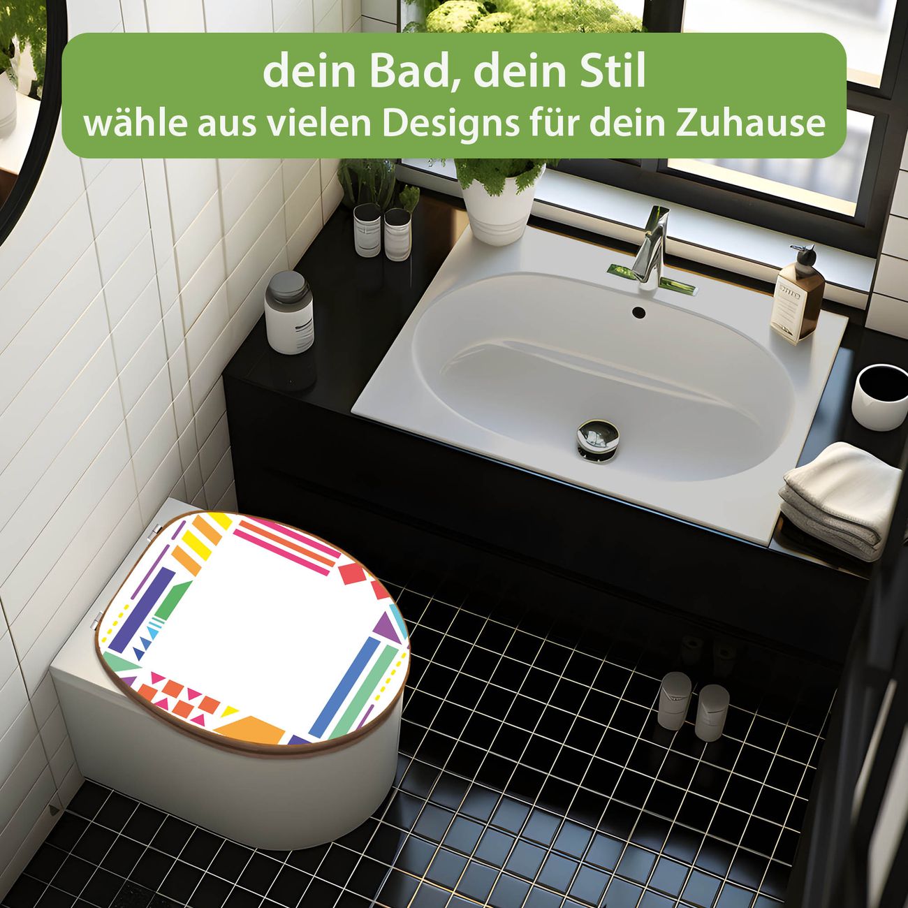 Design WC-Sitz Bambus Holz Motiv Bunter Geometrischer Rahmen 2