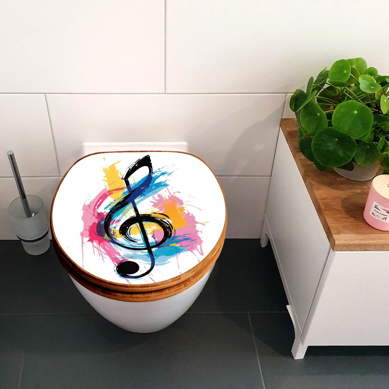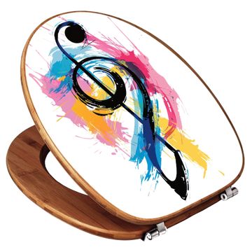 Design WC-Sitz Bambus Holz Motiv Bunter Notenschlüssel