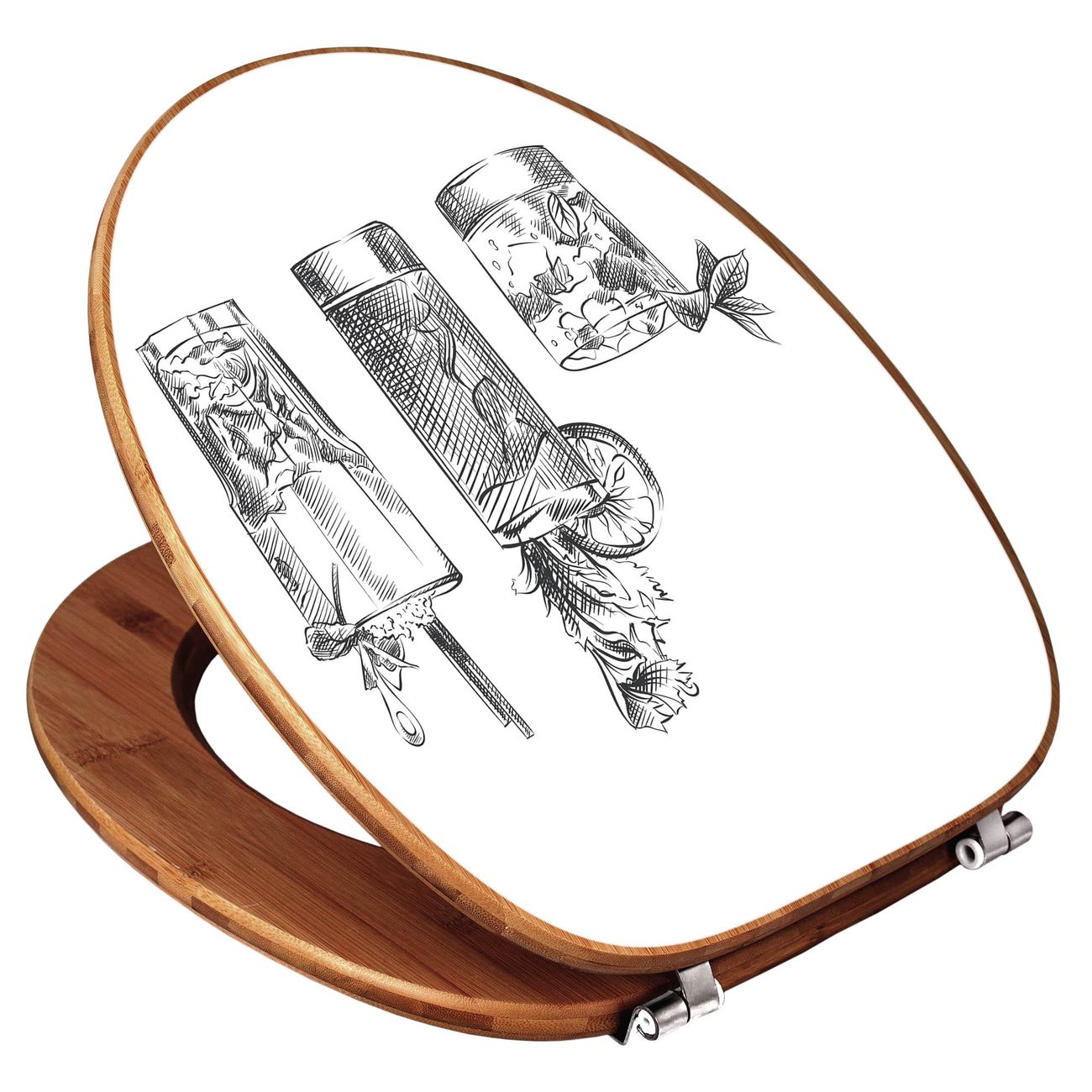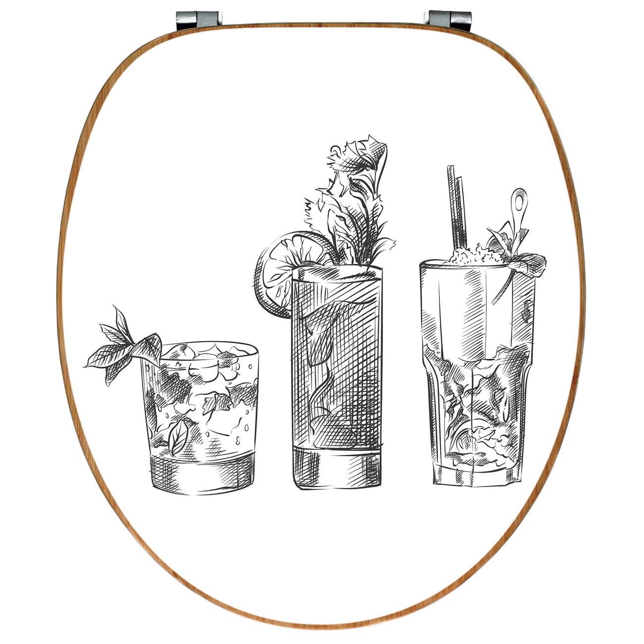 Design WC-Sitz Bambus Holz Motiv Cocktail Skizzen