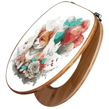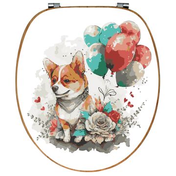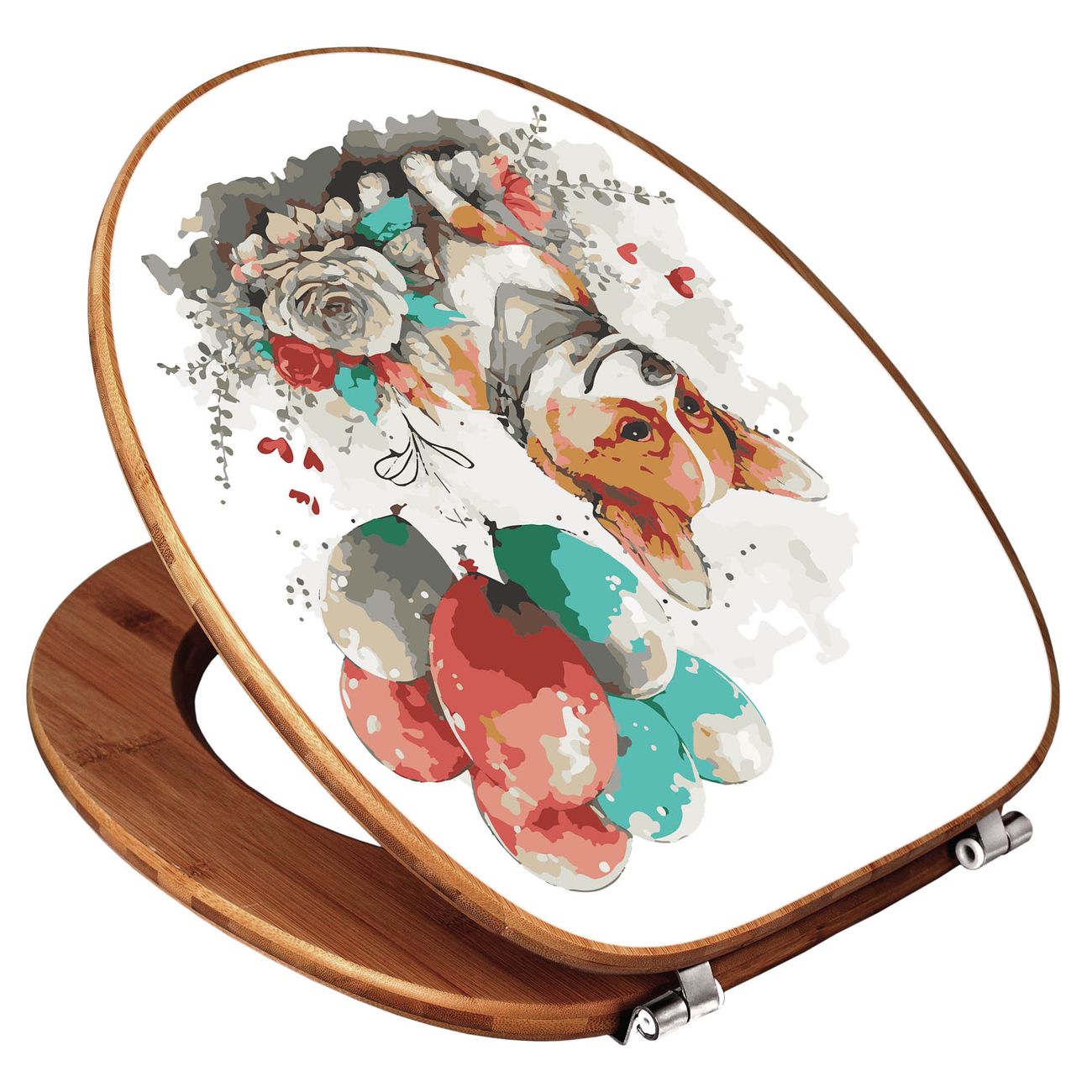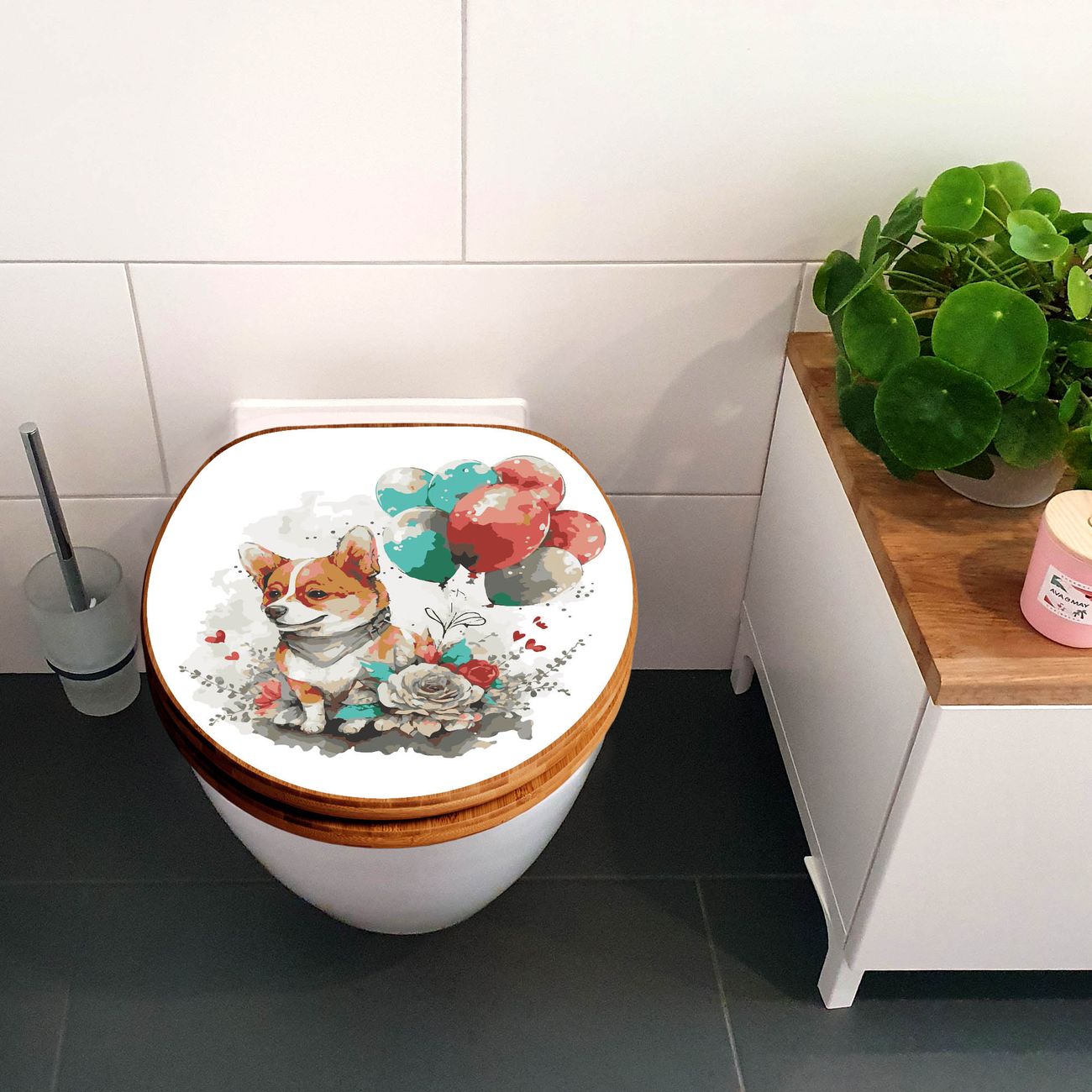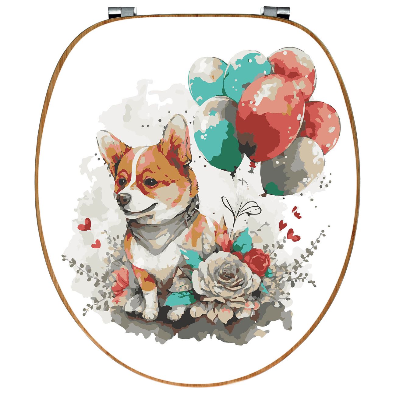 Design WC-Sitz Bambus Holz Motiv Corgi mit Ballons Aquarell