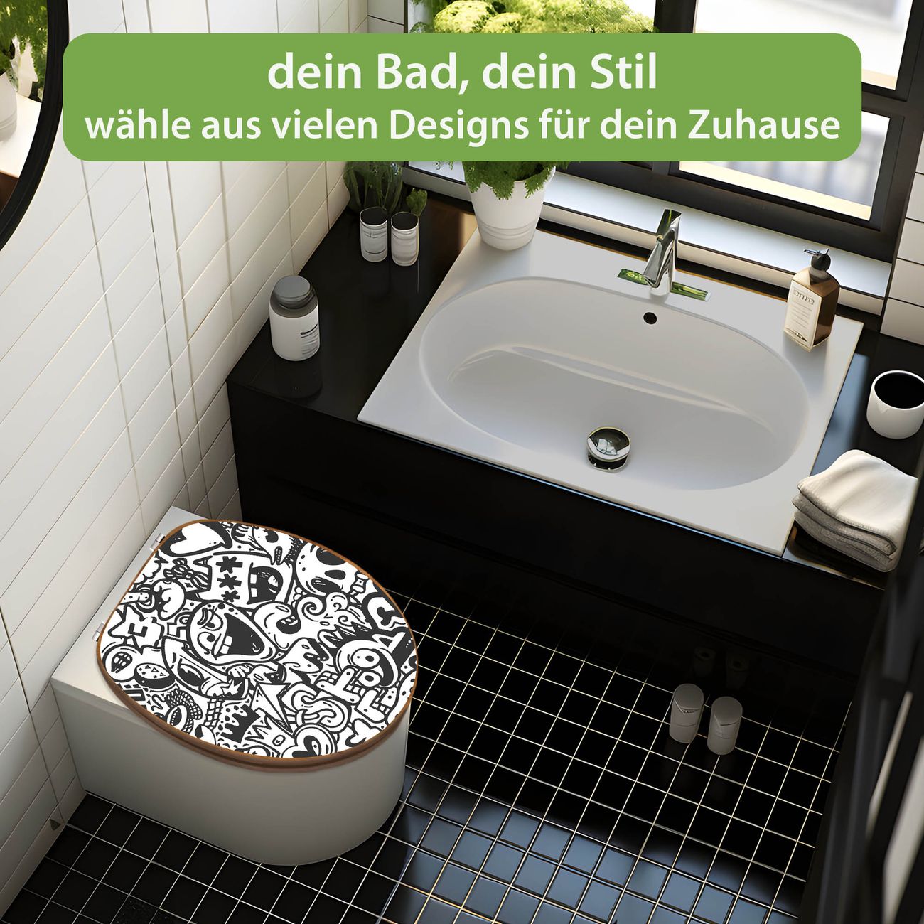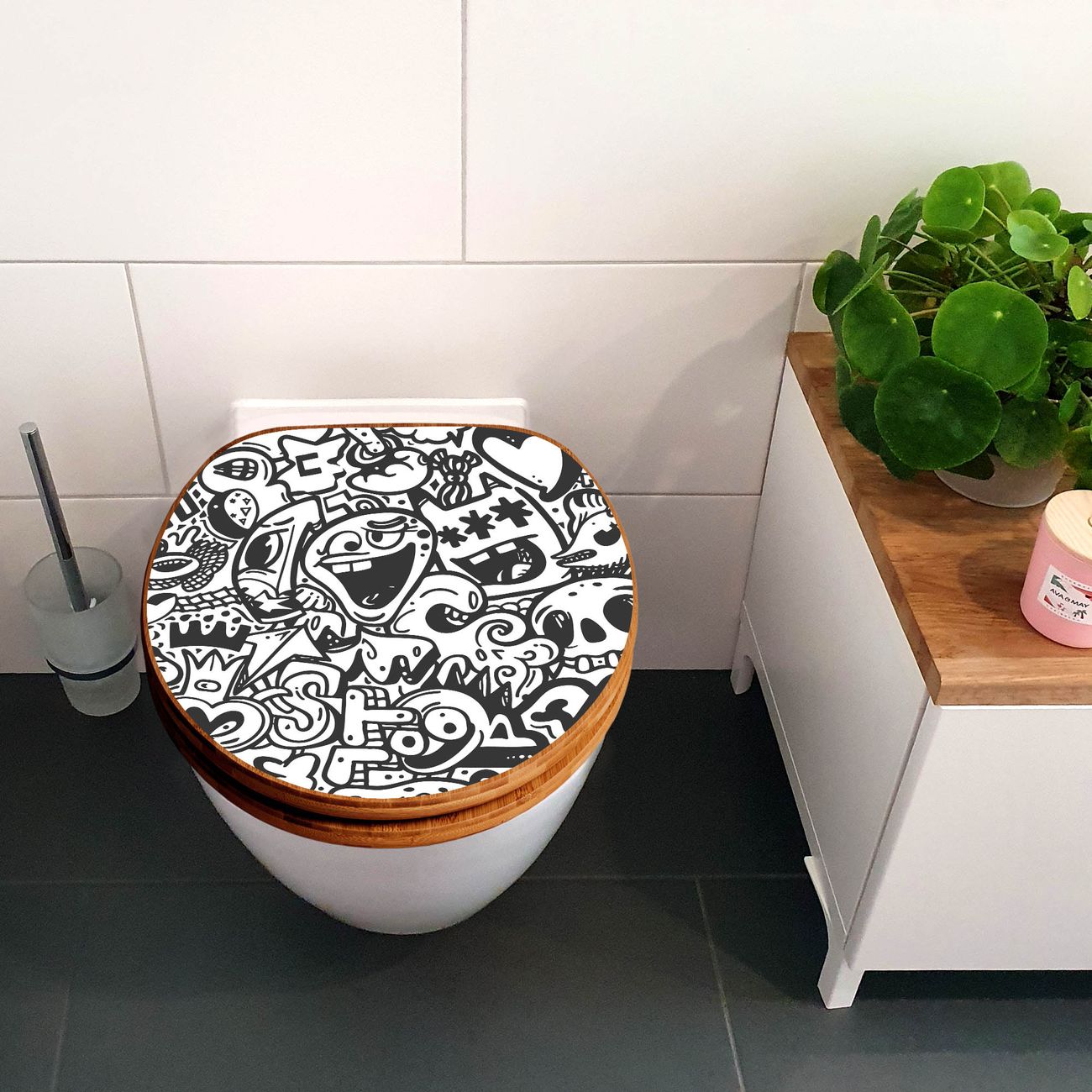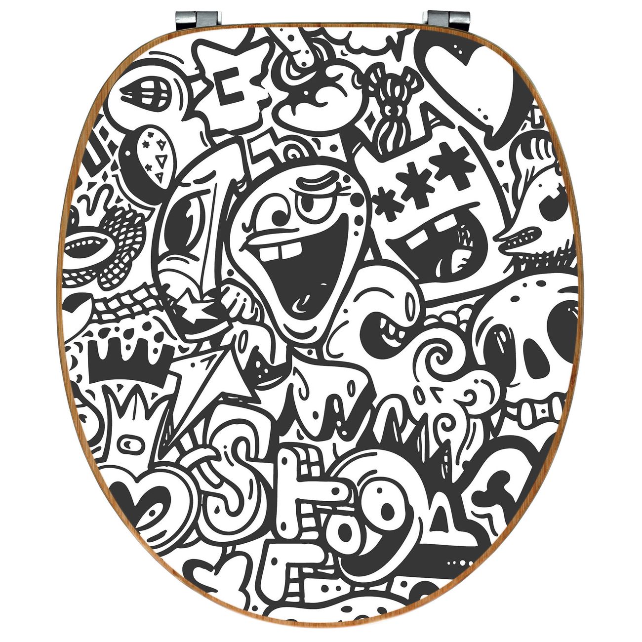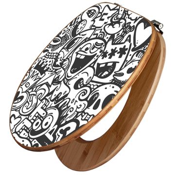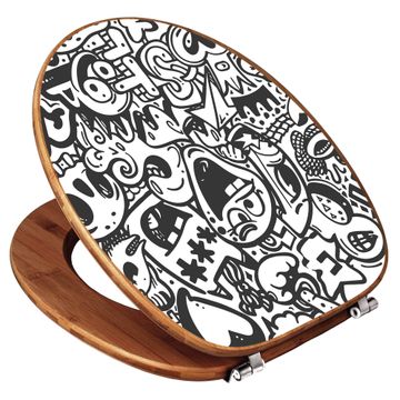 Design WC-Sitz Bambus Holz Motiv Doodle Verrückt
