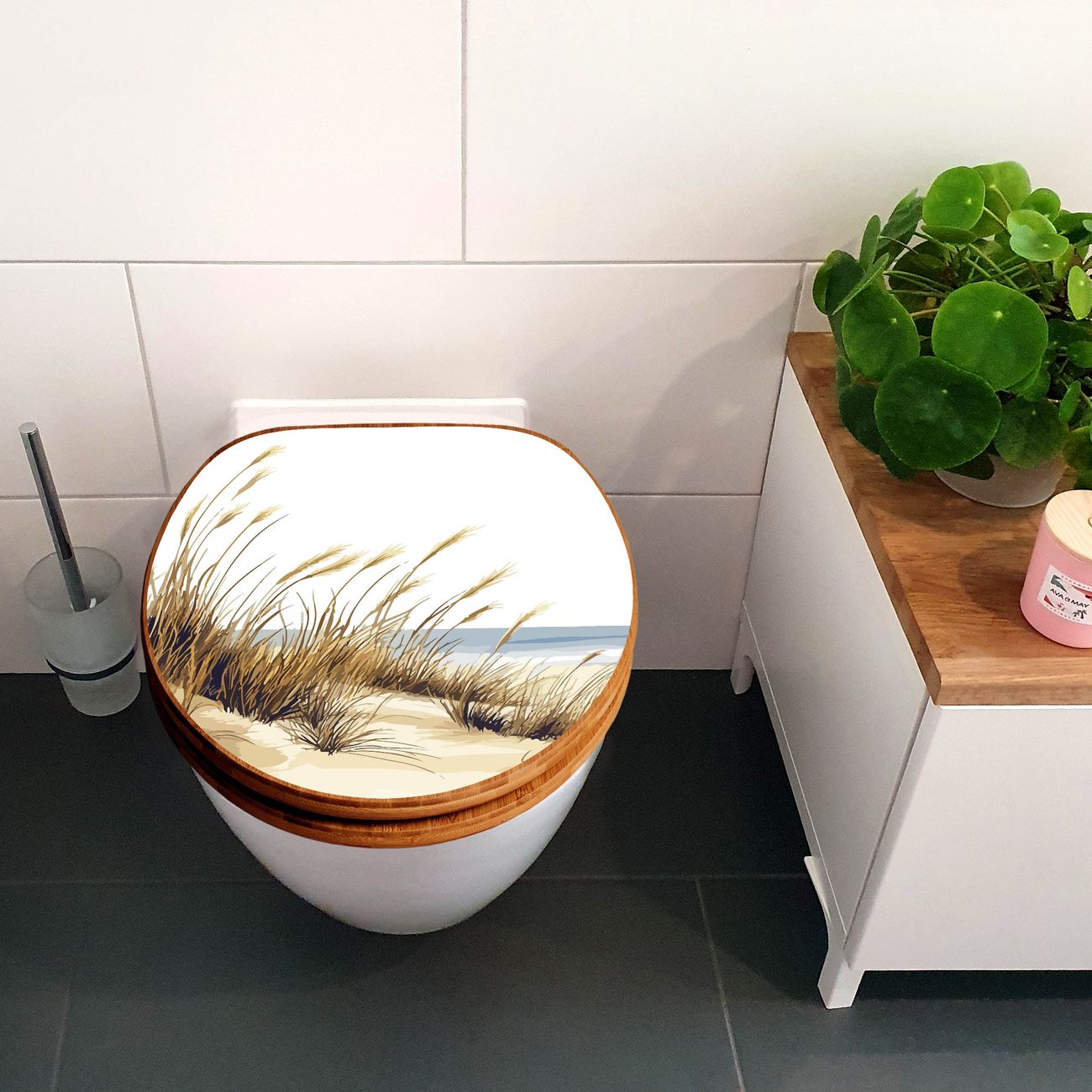 Design WC-Sitz Bambus Holz Motiv Dünenlandschaft am Meer