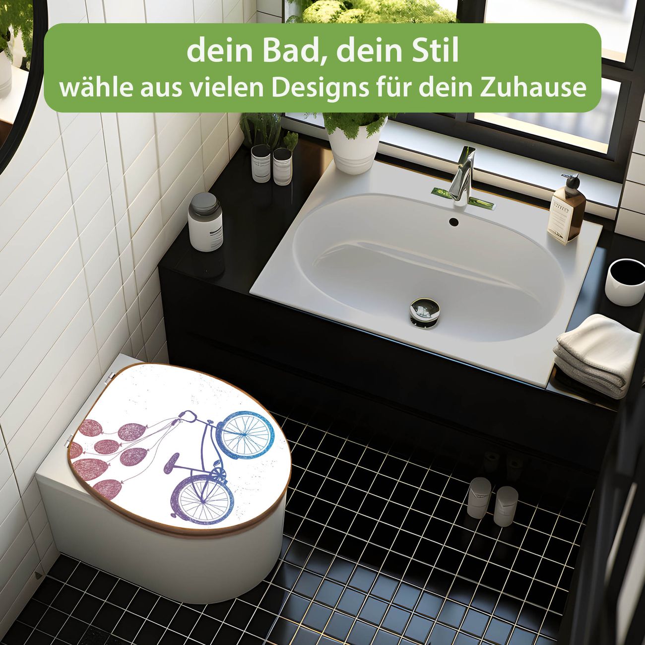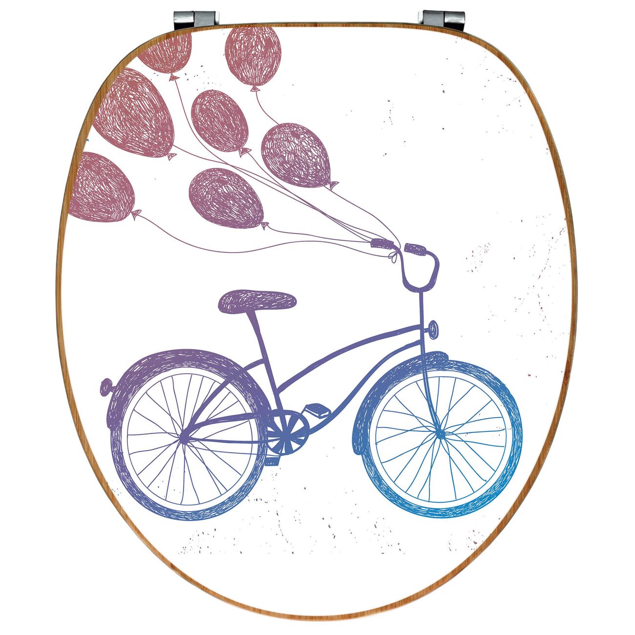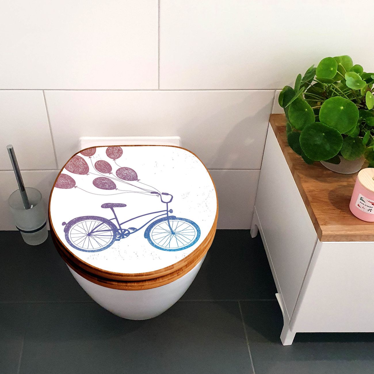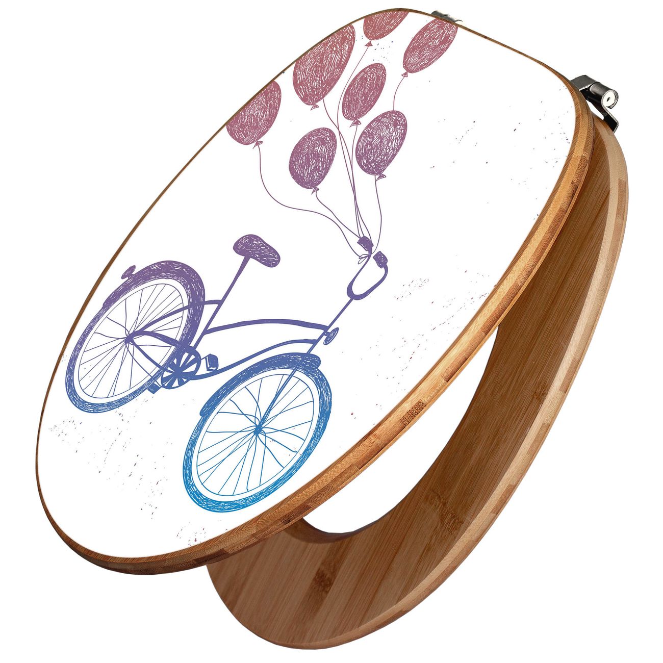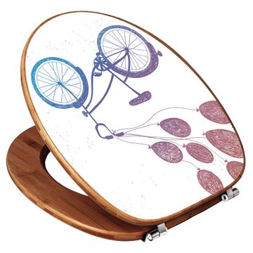 Design WC-Sitz Bambus Holz Motiv Fahrrad mit Luftballons