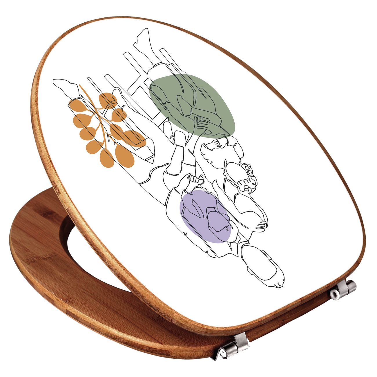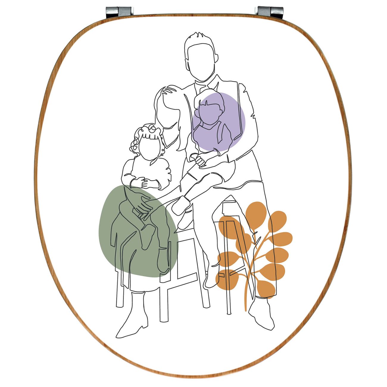 Design WC-Sitz Bambus Holz Motiv Familienglück Lineart