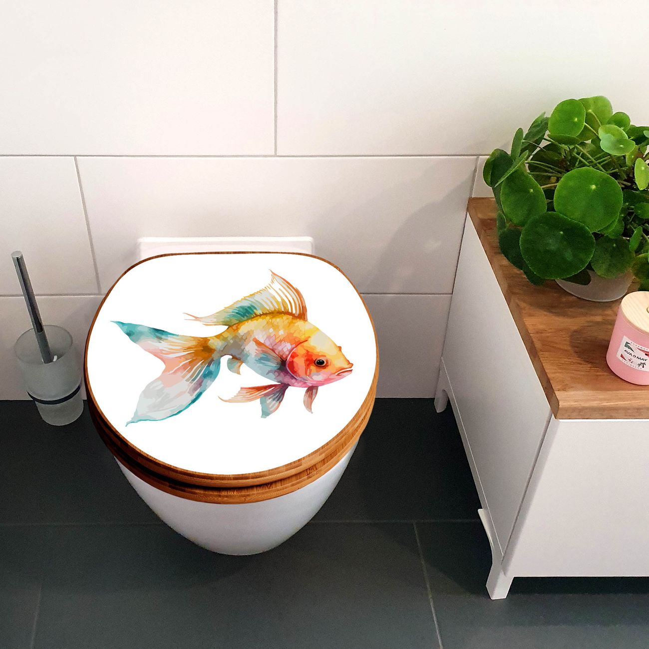Design WC-Sitz Bambus Holz Motiv Farbenfroher Goldfisch