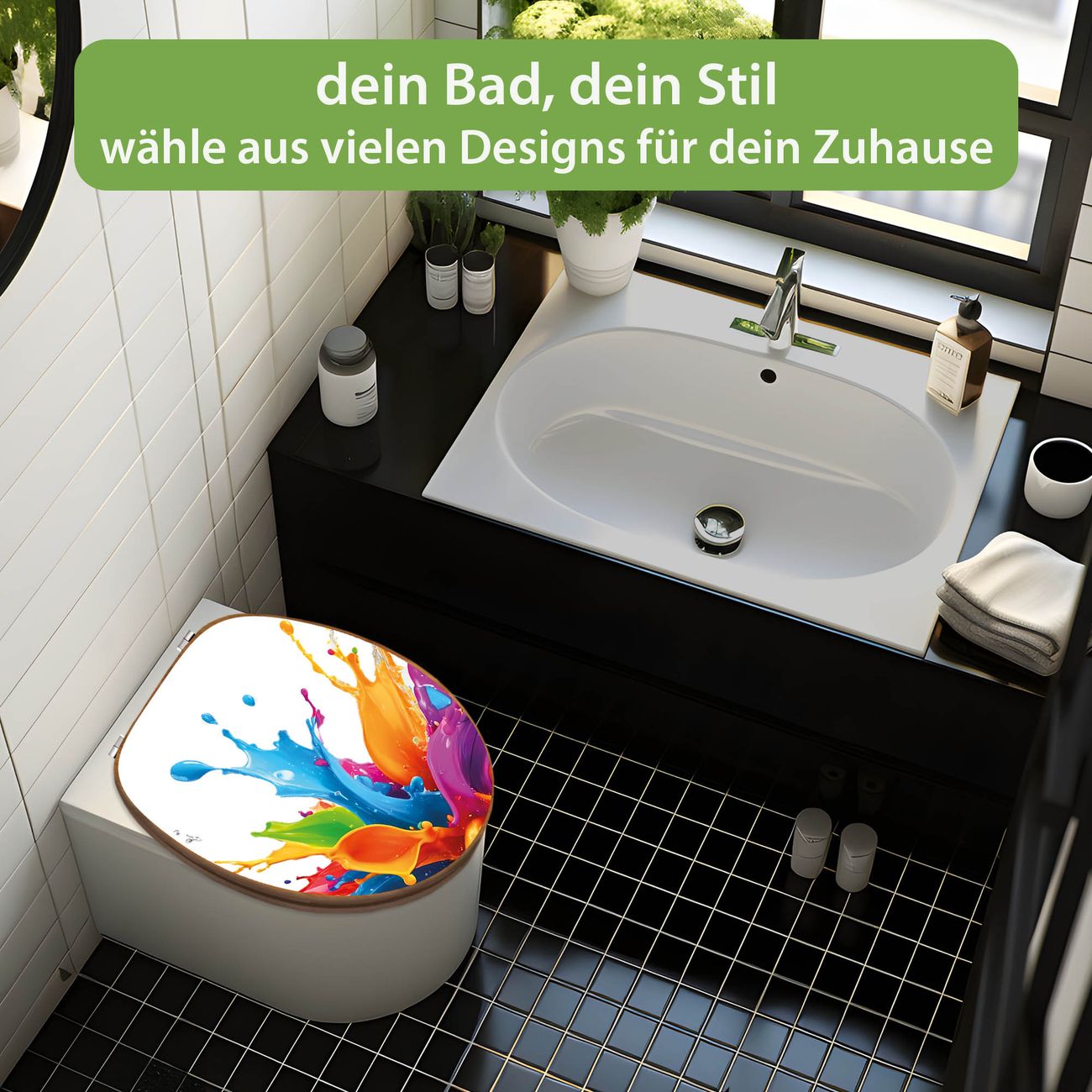 Design WC-Sitz Bambus Holz Motiv Farbspritzer-Explosion