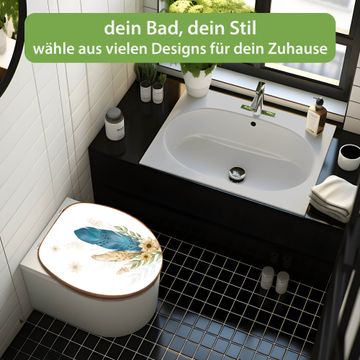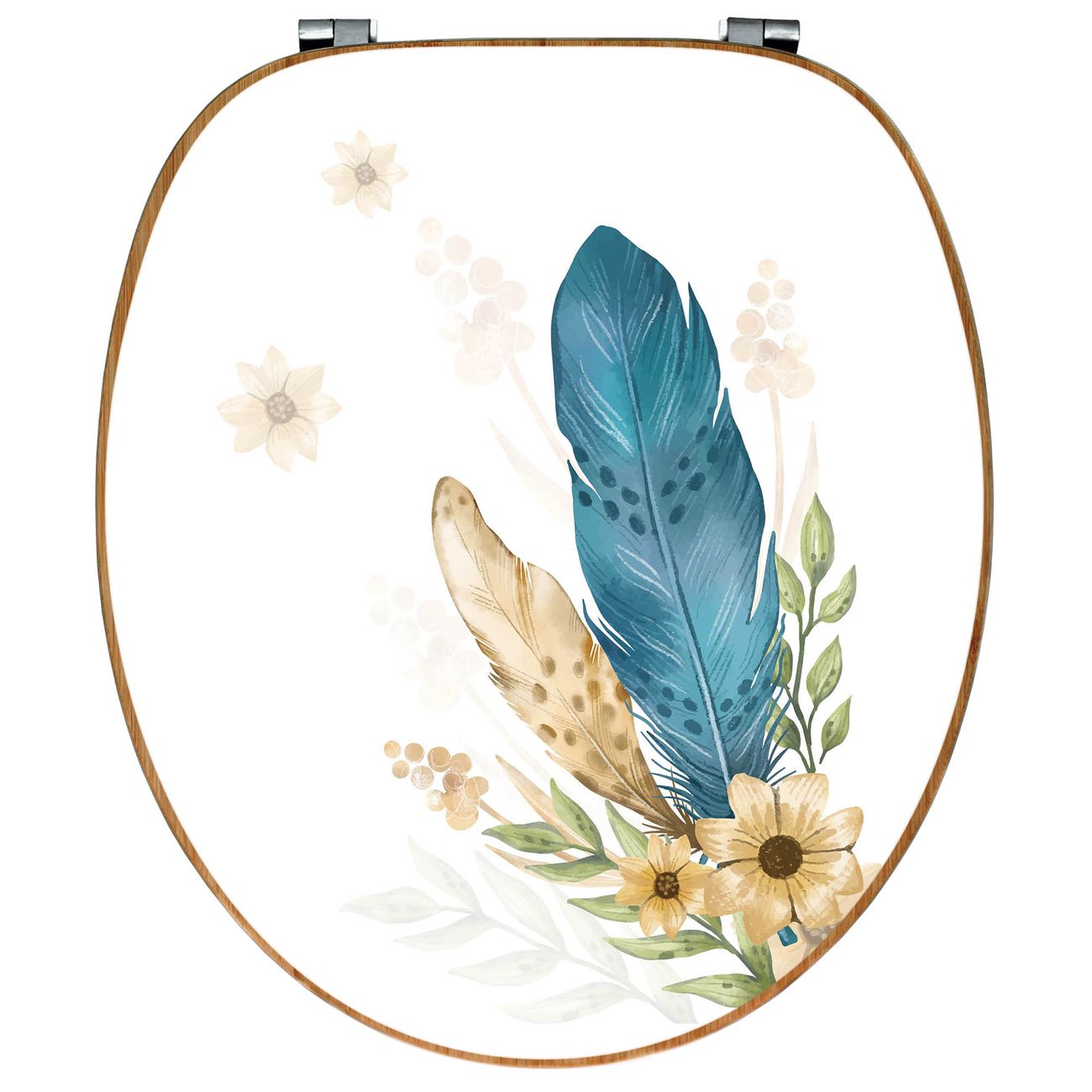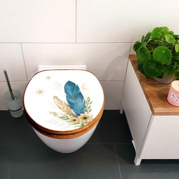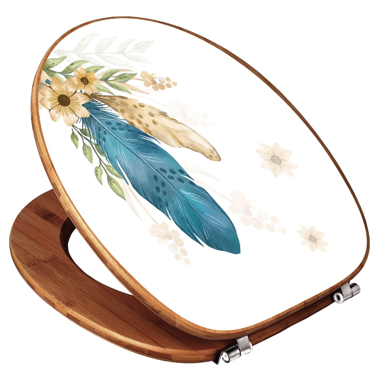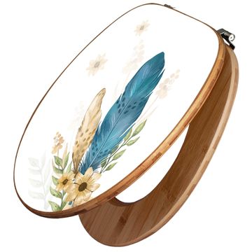 Design WC-Sitz Bambus Holz Motiv Federn und Blüten Boho