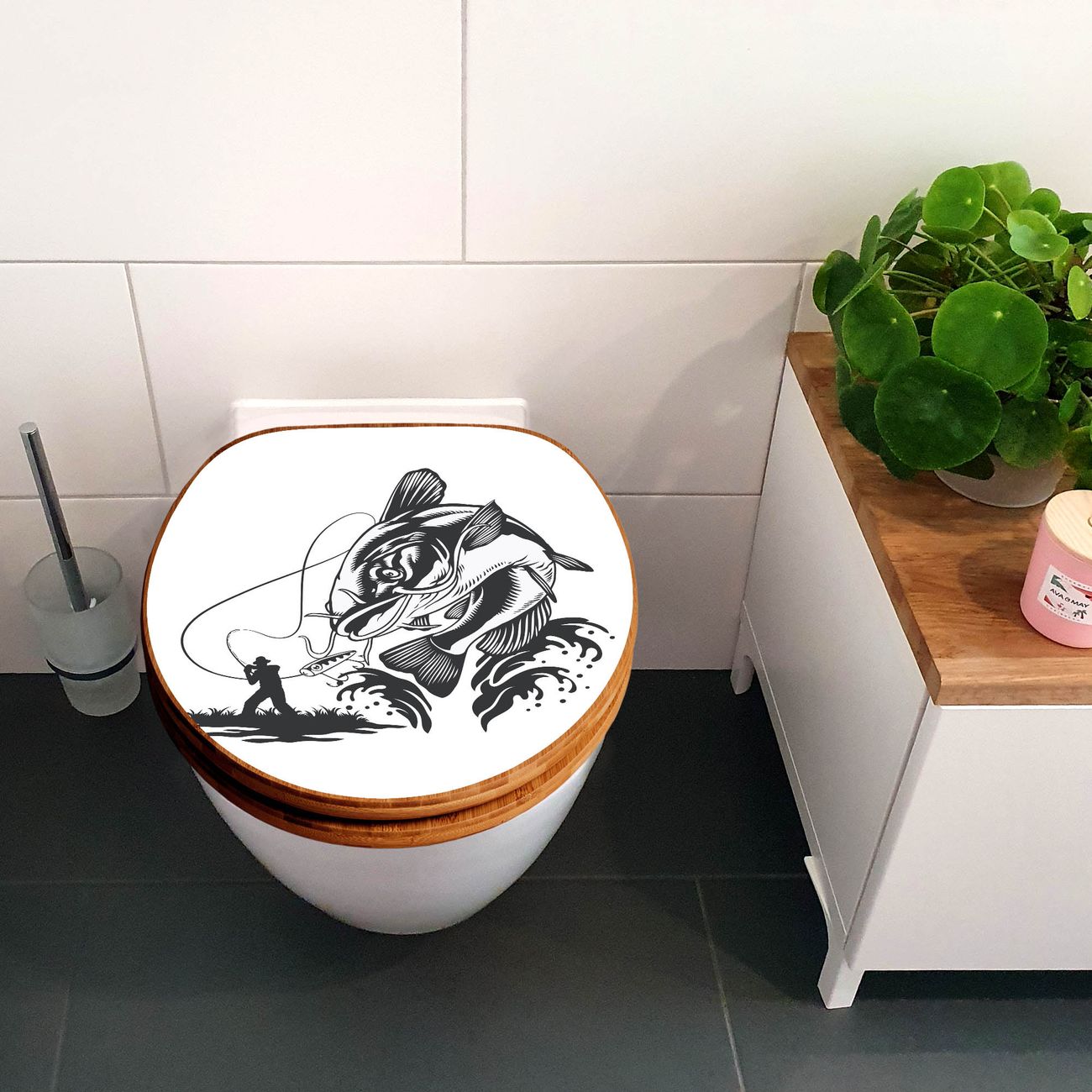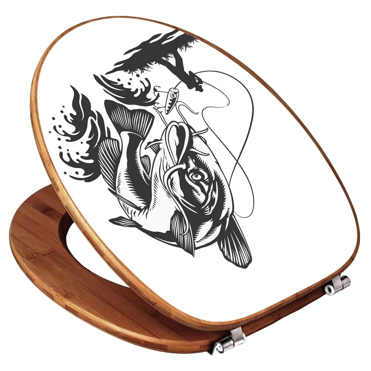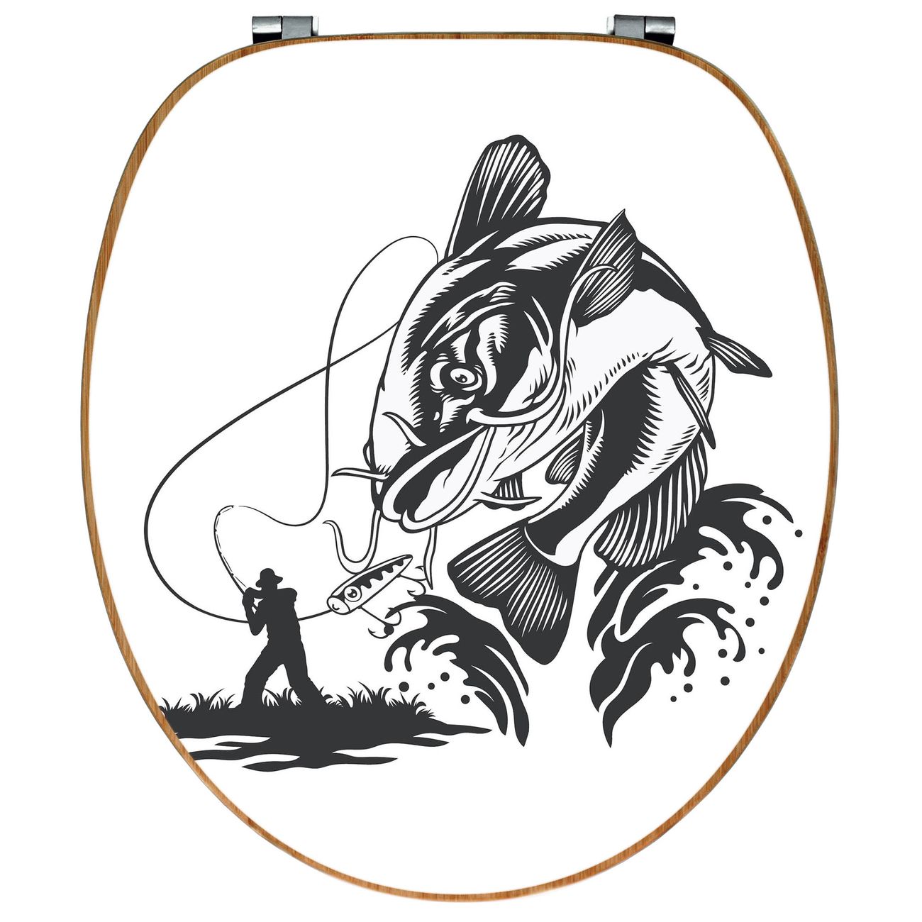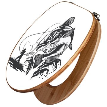Design WC-Sitz Bambus Holz Motiv Fischfang Abenteuer