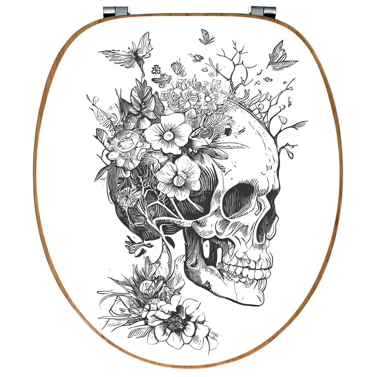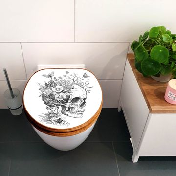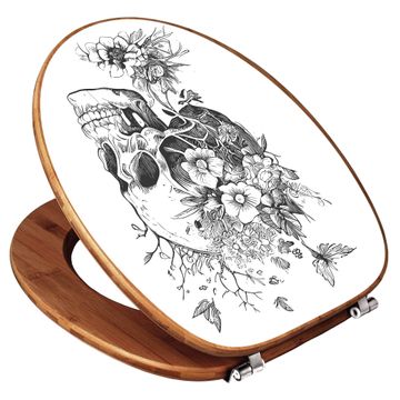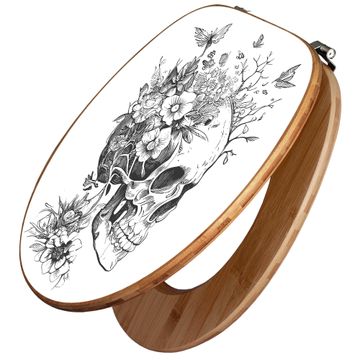 Design WC-Sitz Bambus Holz Motiv Floral Skull