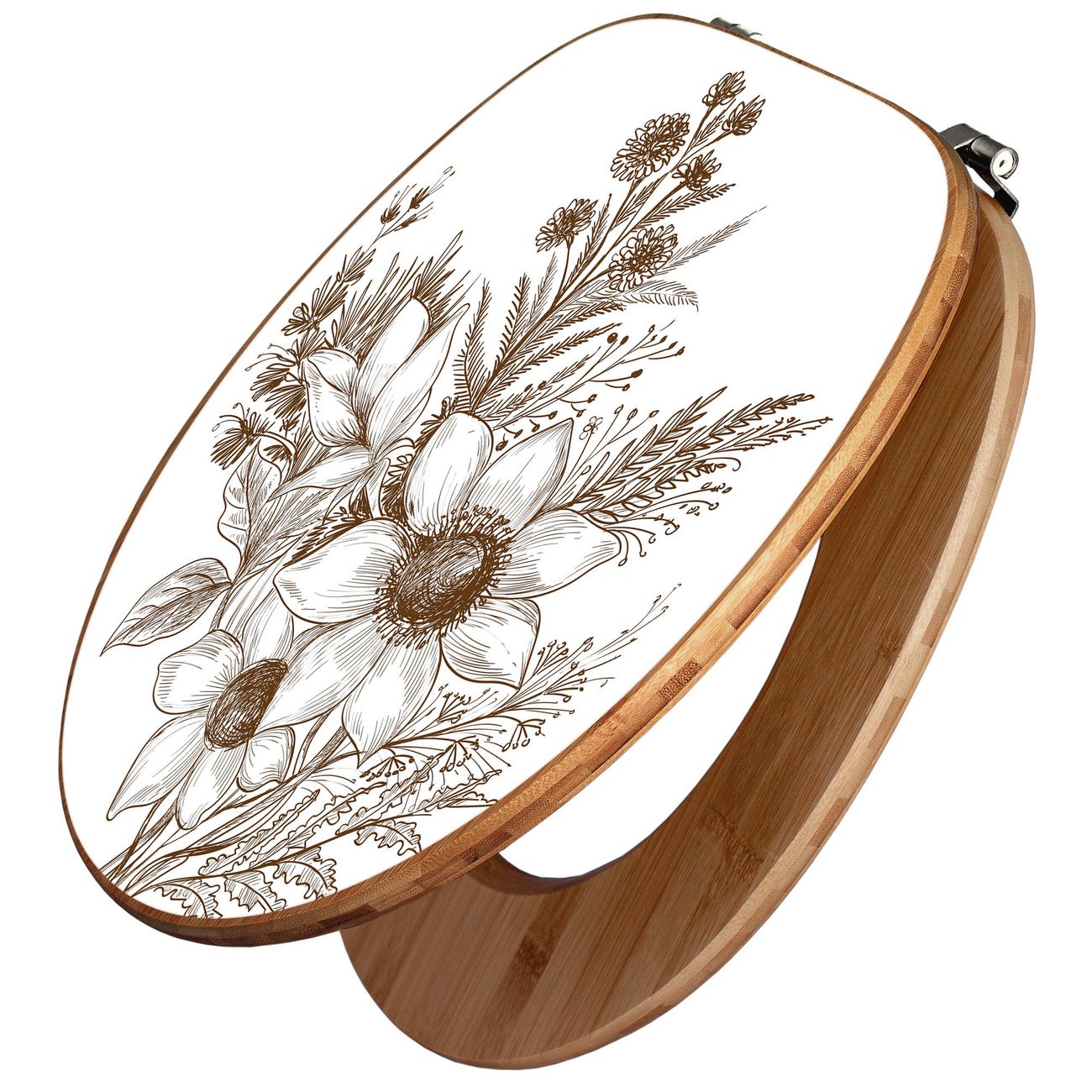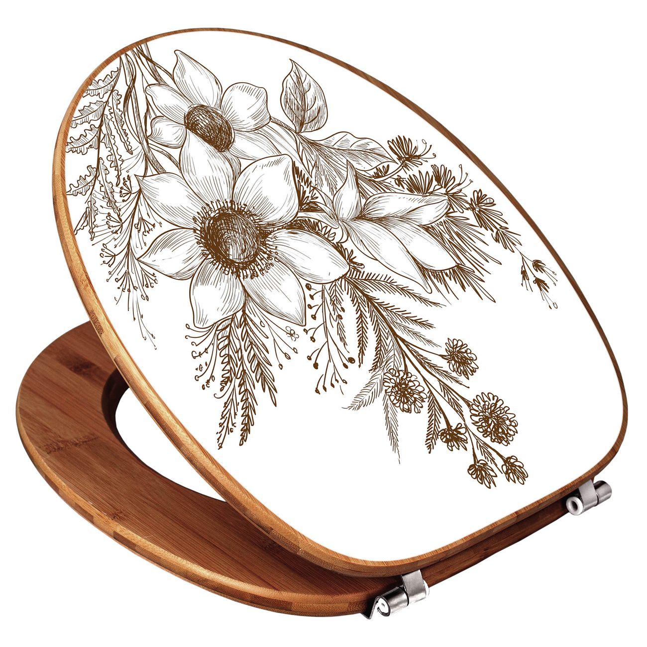Design WC-Sitz Bambus Holz Motiv Florale Zeichnung