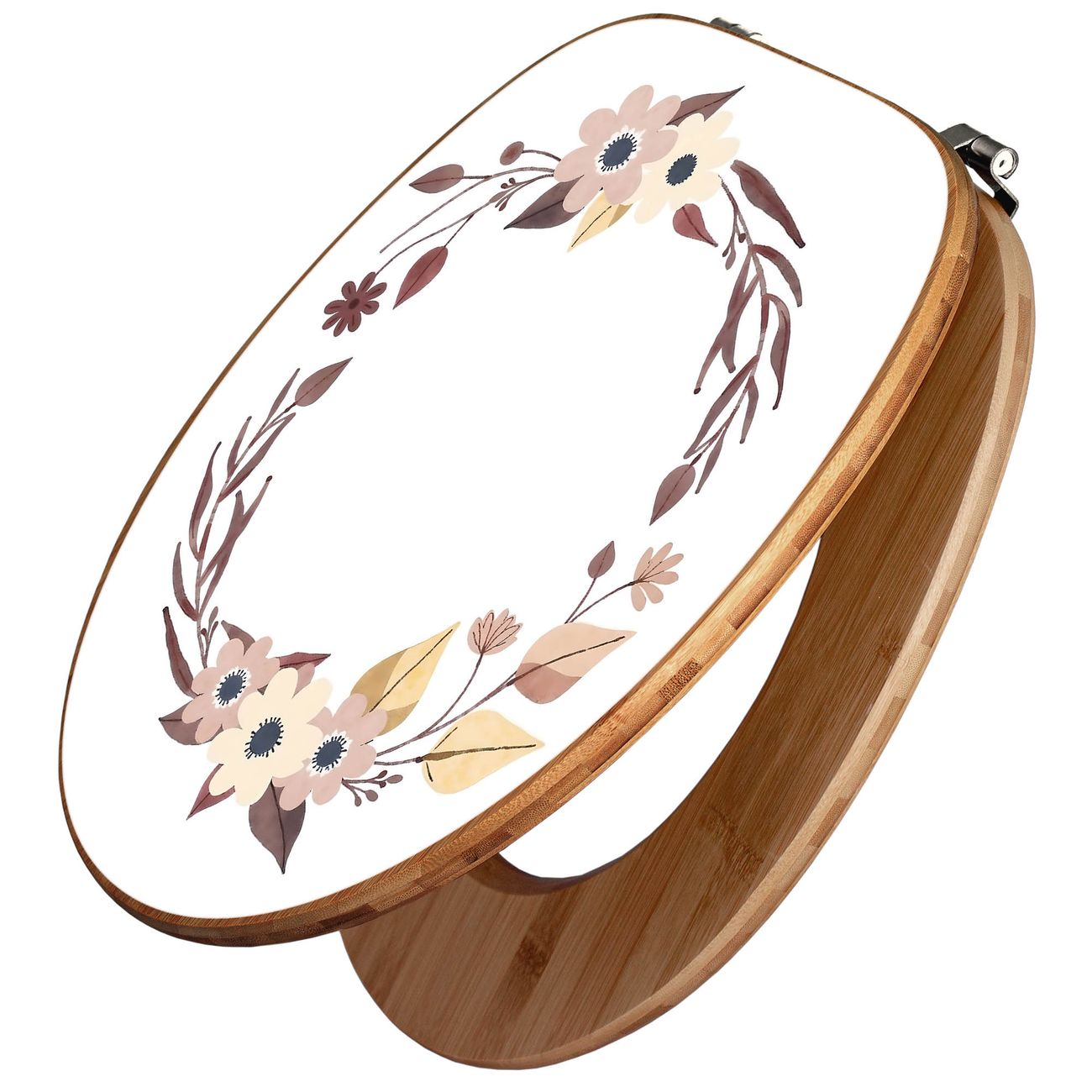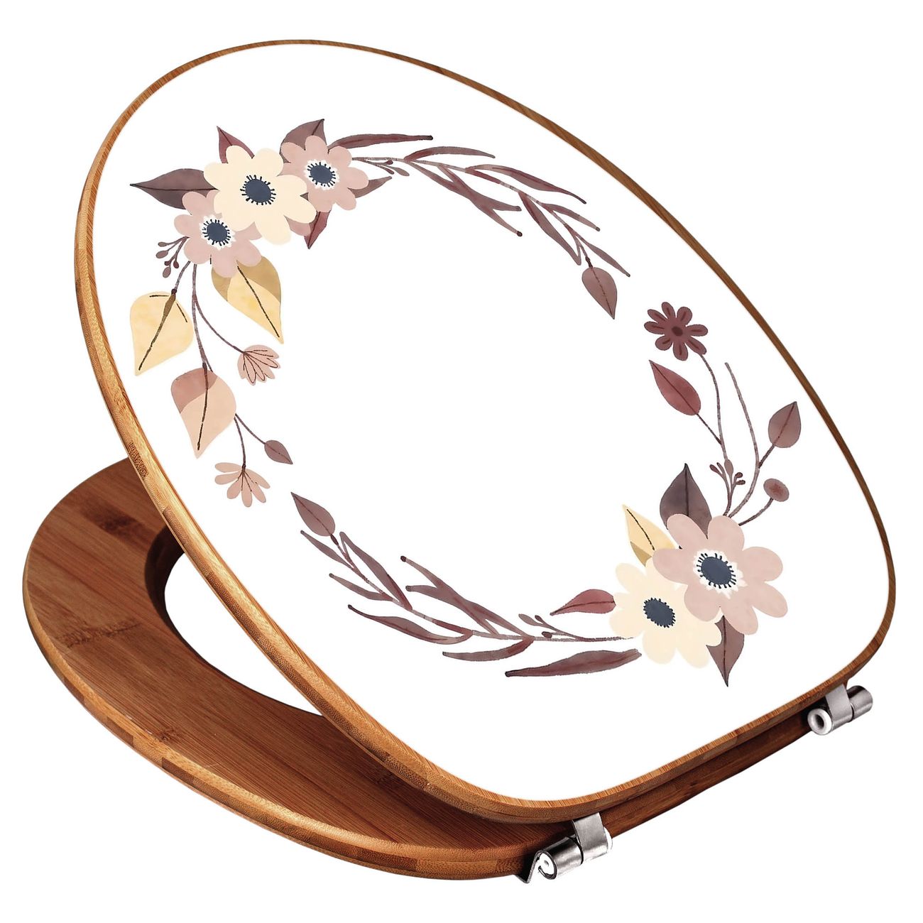 Design WC-Sitz Bambus Holz Motiv Floraler Aquarellkranz